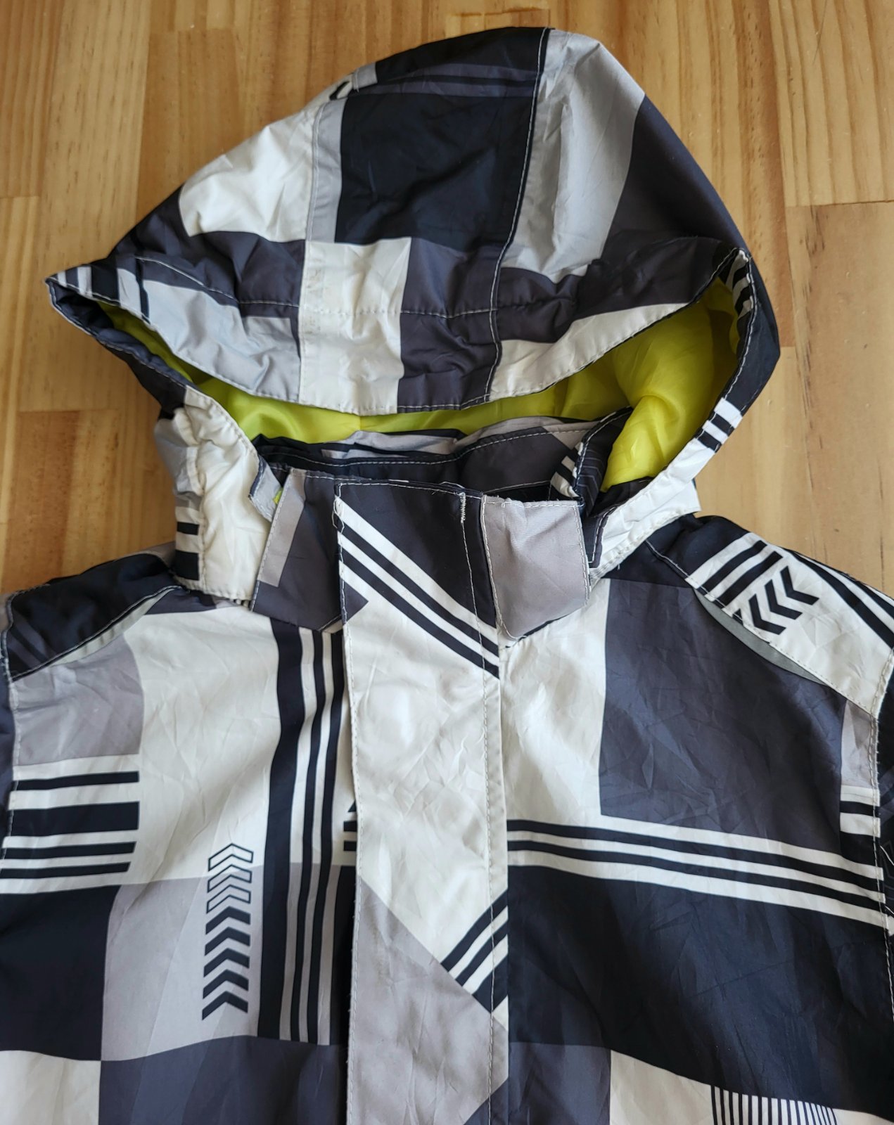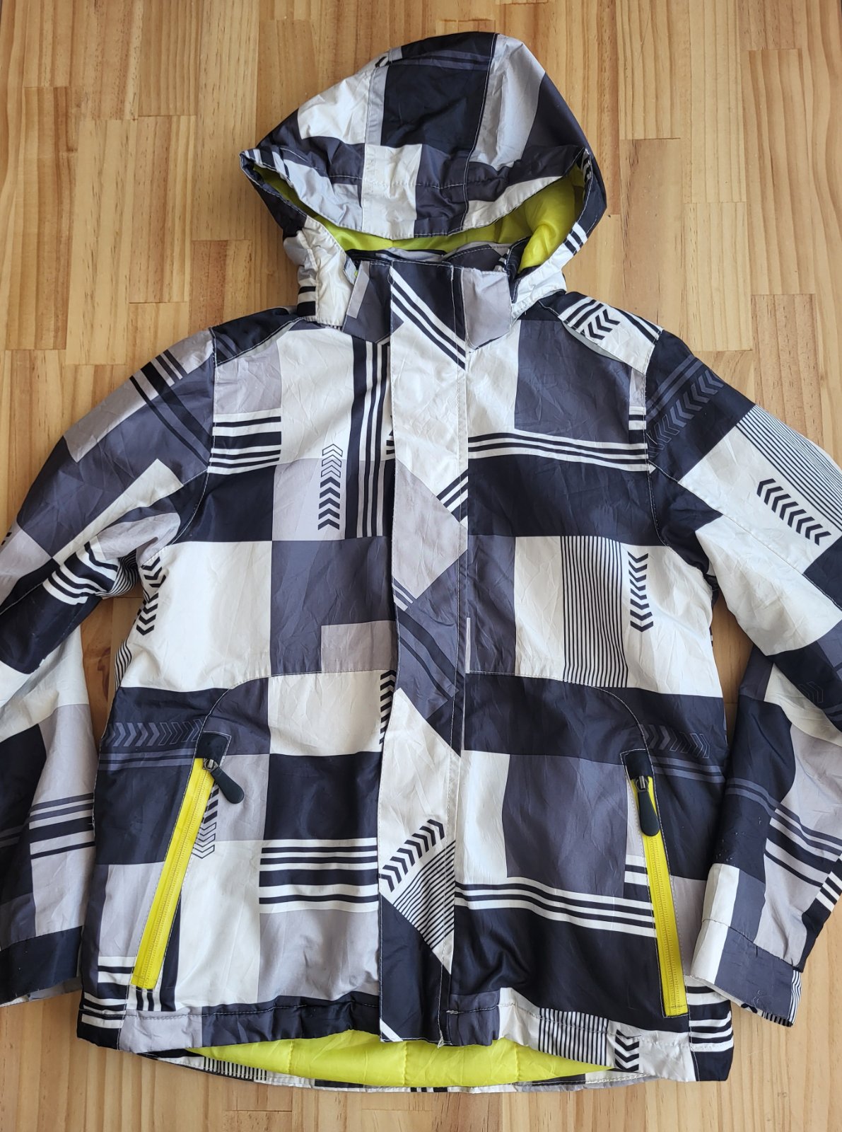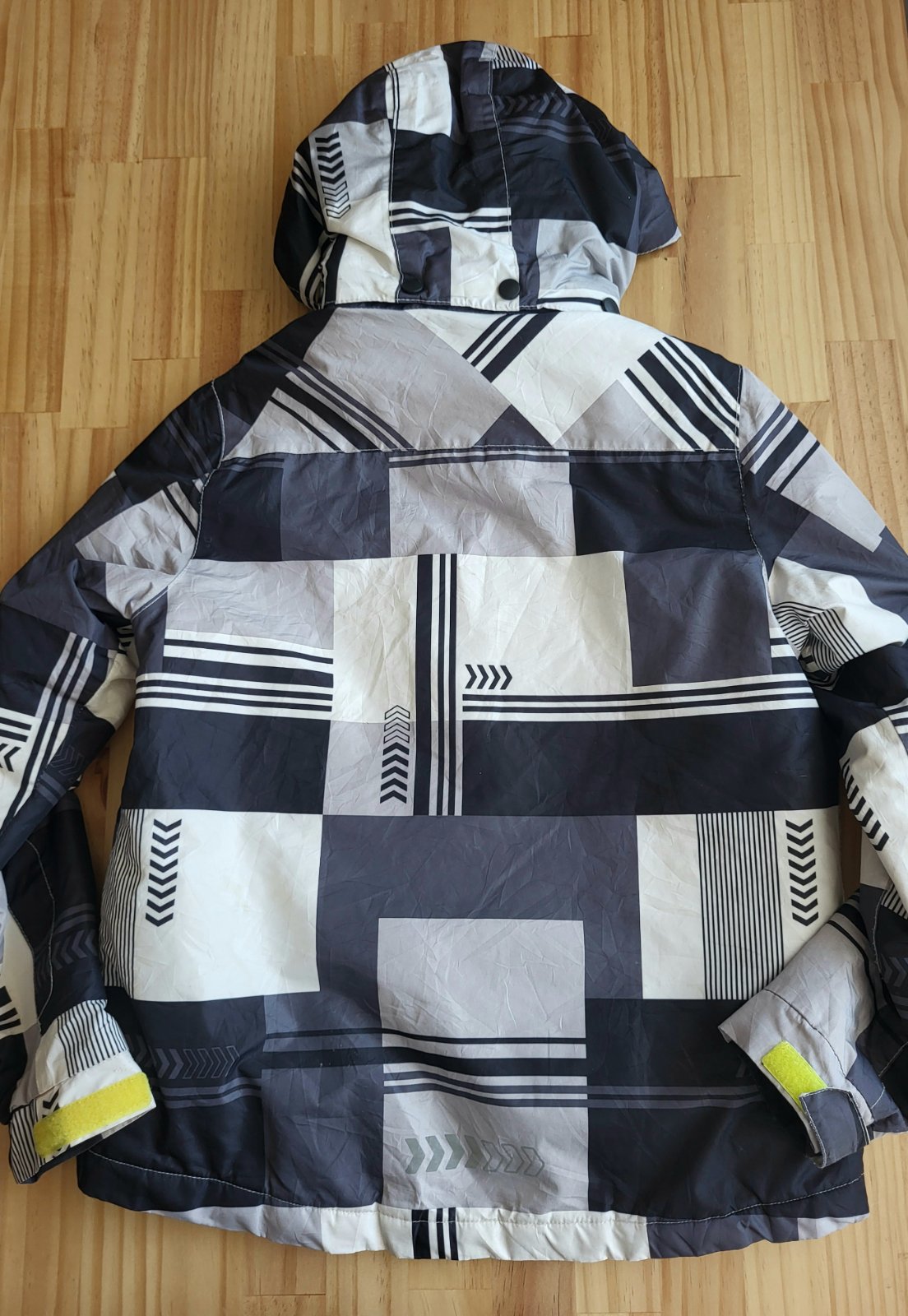 dobrý stav, vhodná na bežné nosenie ako aj zimné športy, má snežný pás a vačok na zips s príklopom na konci rukáva, vodeodolné zipsy na bočných vačkoch, vnútorný vačok na zips, konce rukávov so stiahnutím na suchý zips, miestami ošúchaná, s nevýrazným ušpinením a rozpáraním ma boku bundy, ja žiaľ nemám čas zašívať, jeden cvok čo pripína kapucňu s bundou sa oddelil, viď detaily,pošlem buď poštou alebo packetou