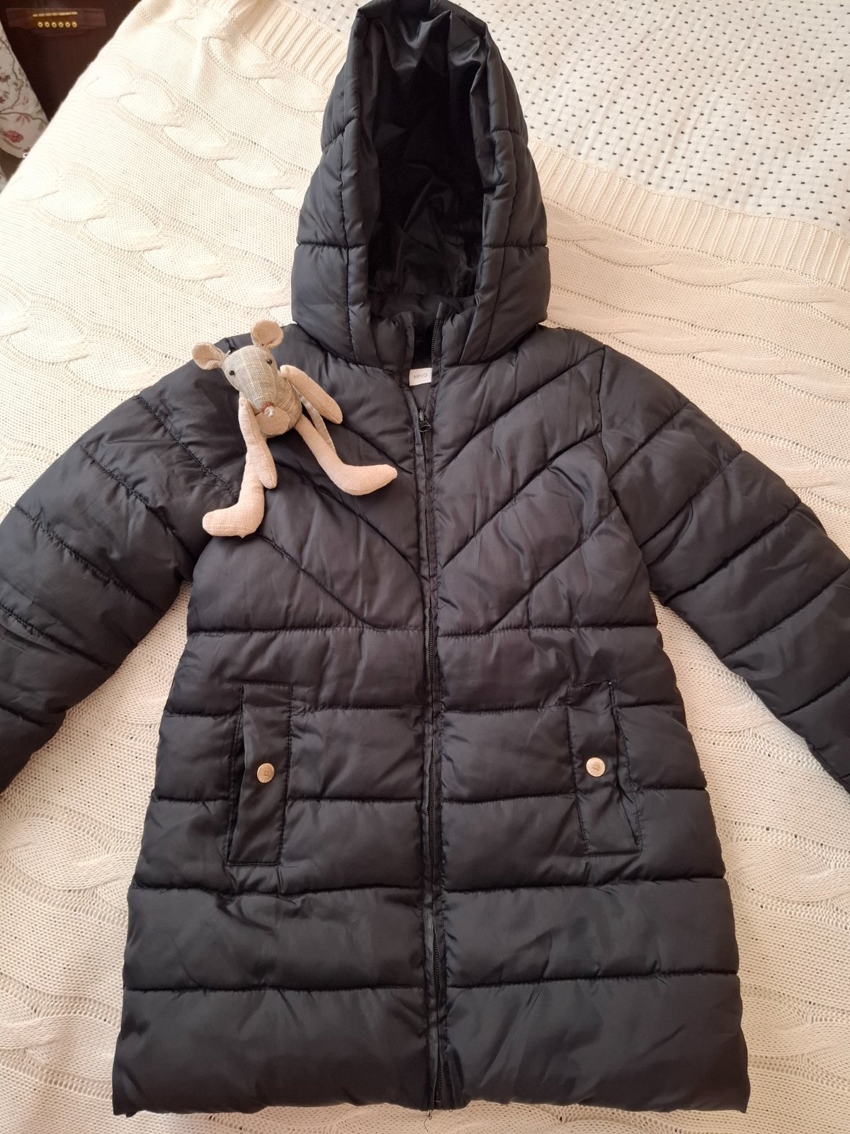 Teplá zimná bunda značky Mango, predĺžený strih, nositeľná dlhšie. Bez poškodenia, len výplň už nieje tak pekne usporiadaná ako ked bola nová.