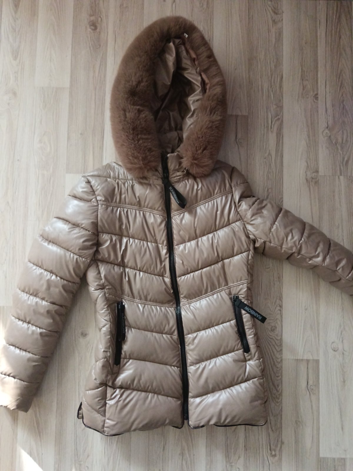 damska zimna bundicka s odnimatelnou kapuckou,v pase opastek.je velmi tepla.velkost M
