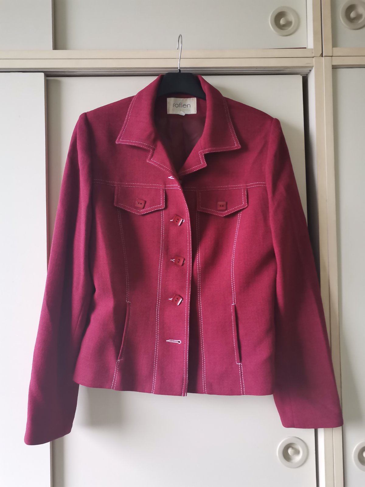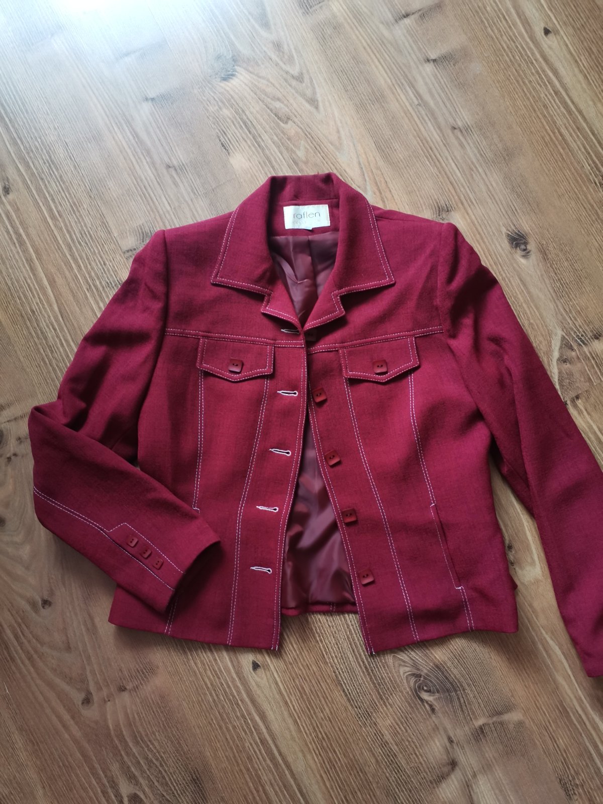 Sako bordovej farby, veľkosť 40 alebo veľkosť UK 12.