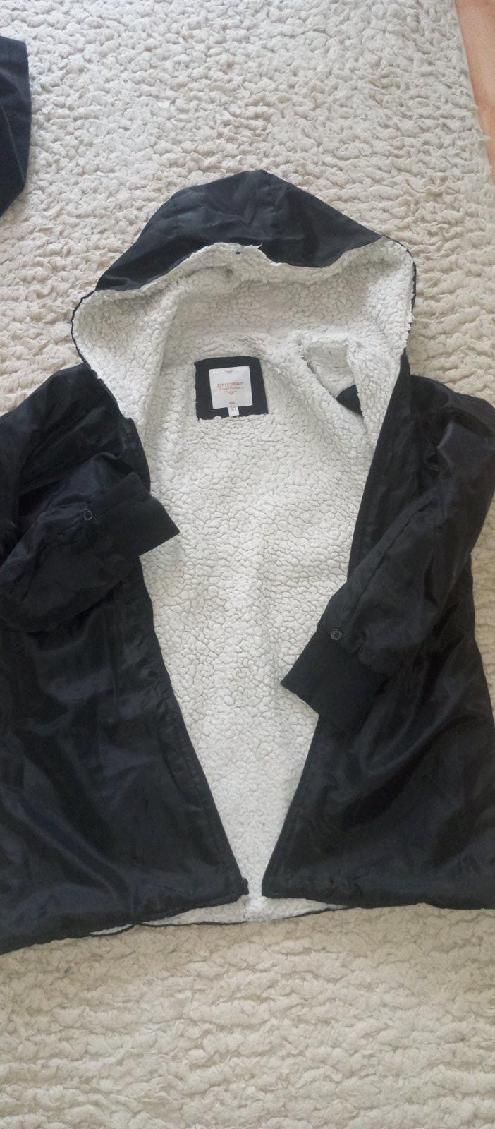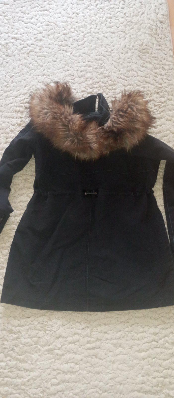 Predám zimnú vetrovku veľkosti 40, značka Clockhouse, miery: 78 cm dĺžka, 52cm šírka v podpazuší, rukáv dlhý 47cm od podpazušia a 64cm od ramena. Predné vrecká, odnímateľná kožušinka z kapucni, kapucna je pevná. +odnímateľná vnutorná teplucká vlozka.