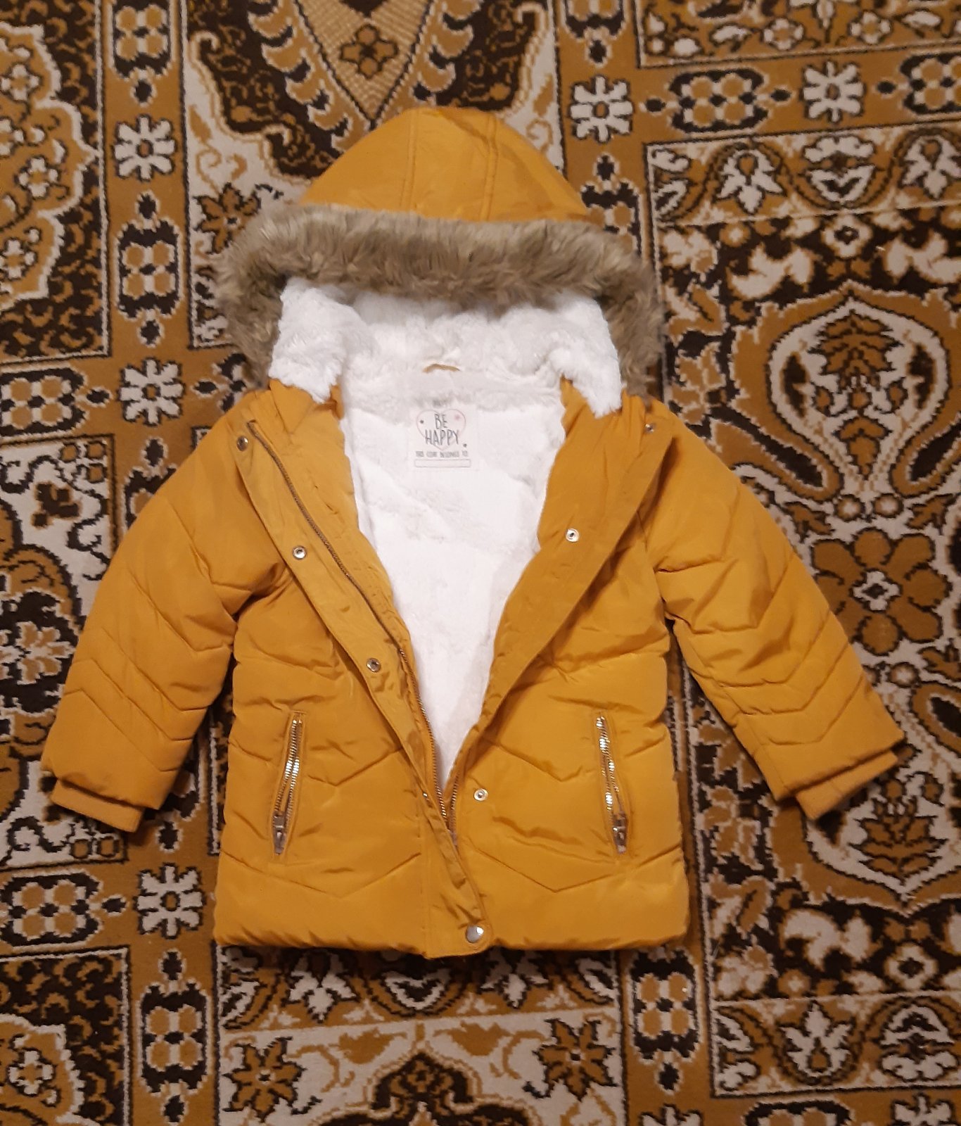 Teplá mäkkučká bundička v top stave, s krásnou kožušinkou, ako nová, veľkosť 4-5 rokov