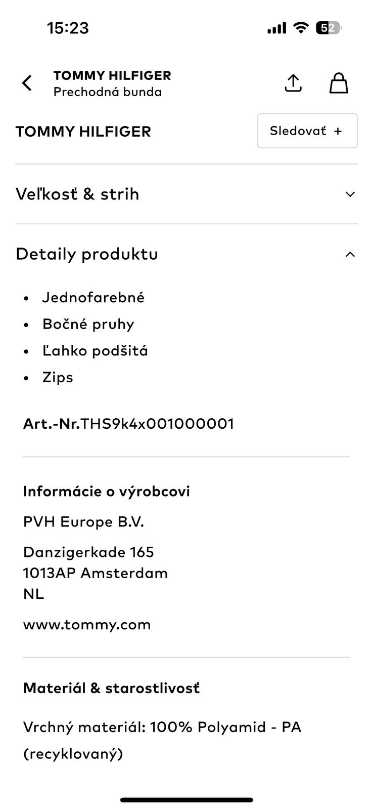 Predám prechodnú bundu Tommy Hilfiger v.176