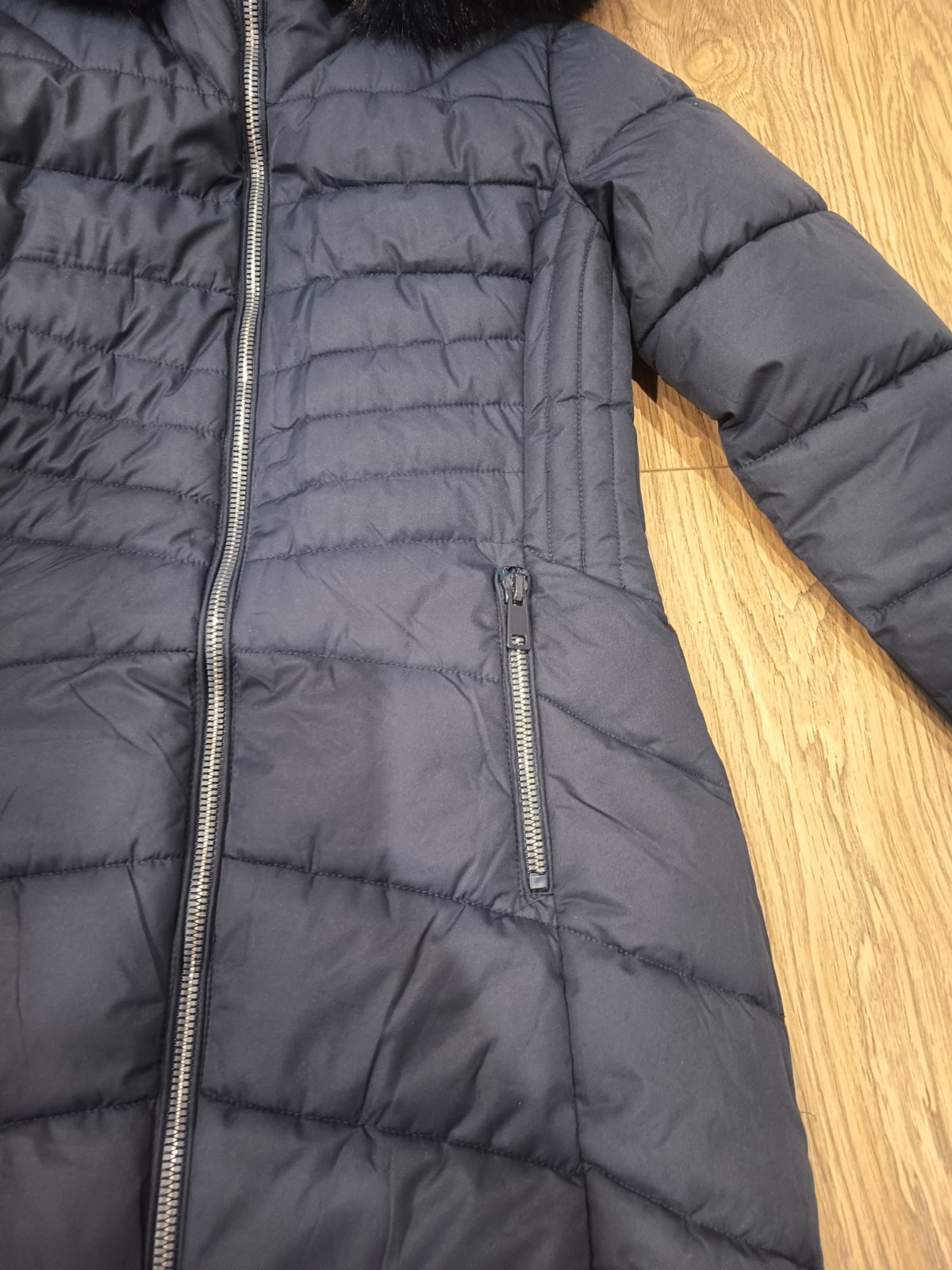 Krásna a teplá zimná bunda, ako nová vzatá iba raz. Krásna tmavomodrá farba, fotka trošku skresľuje farbu.