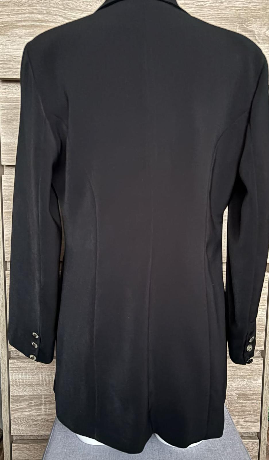 prechodný kabát čierny veľkosť M cena: 15€ rozmery: dlžka: 78 cm pás: 76 cm prsia: 92 cm rukáv: 58 cm