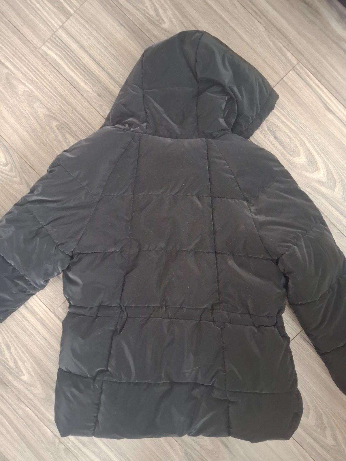 Predlžená zateplená bunda. Vnútorná teplučká podšívka. Funkčné bočné vrecká. Bunda sa zapína na zips. V strede sa dá stiahnuť. Obdobie zima. Kúpené nové po jednom dieťati, 100% stave, vhodné do šk...
