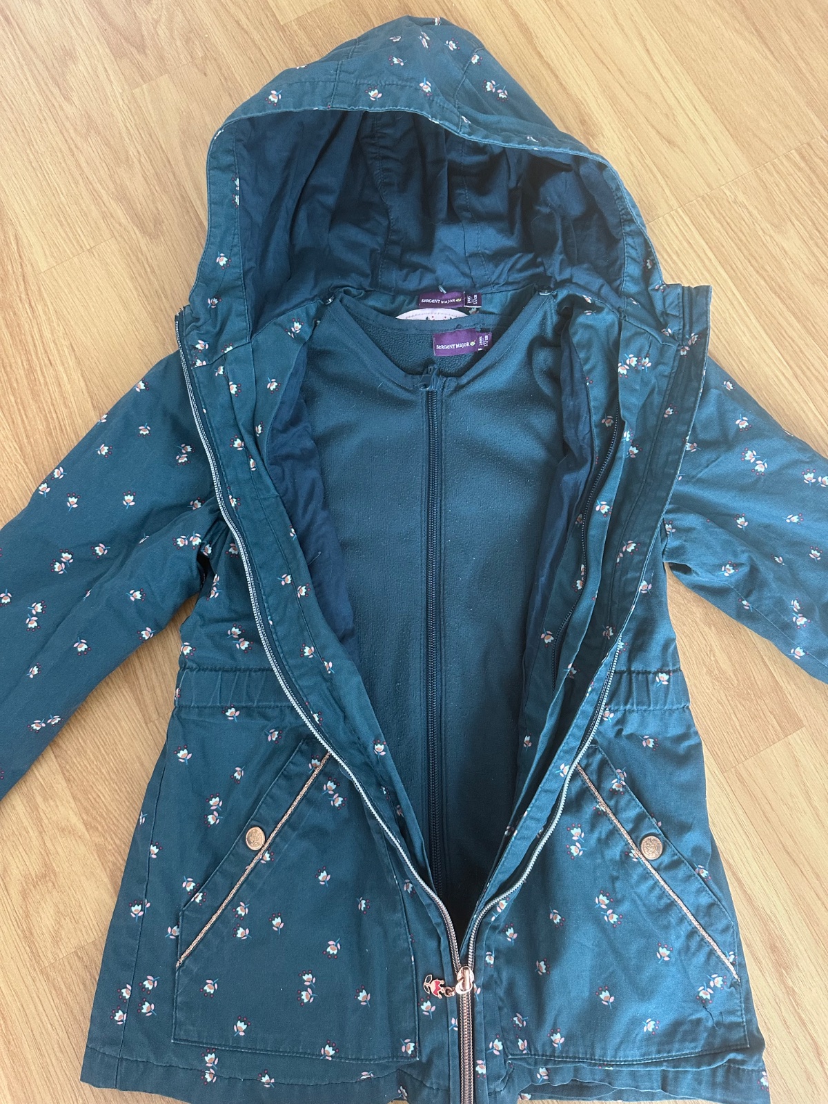 V dobrom stave, zateplená, vnútra vrstva sa da odpojiť a nosit ako mikinku.