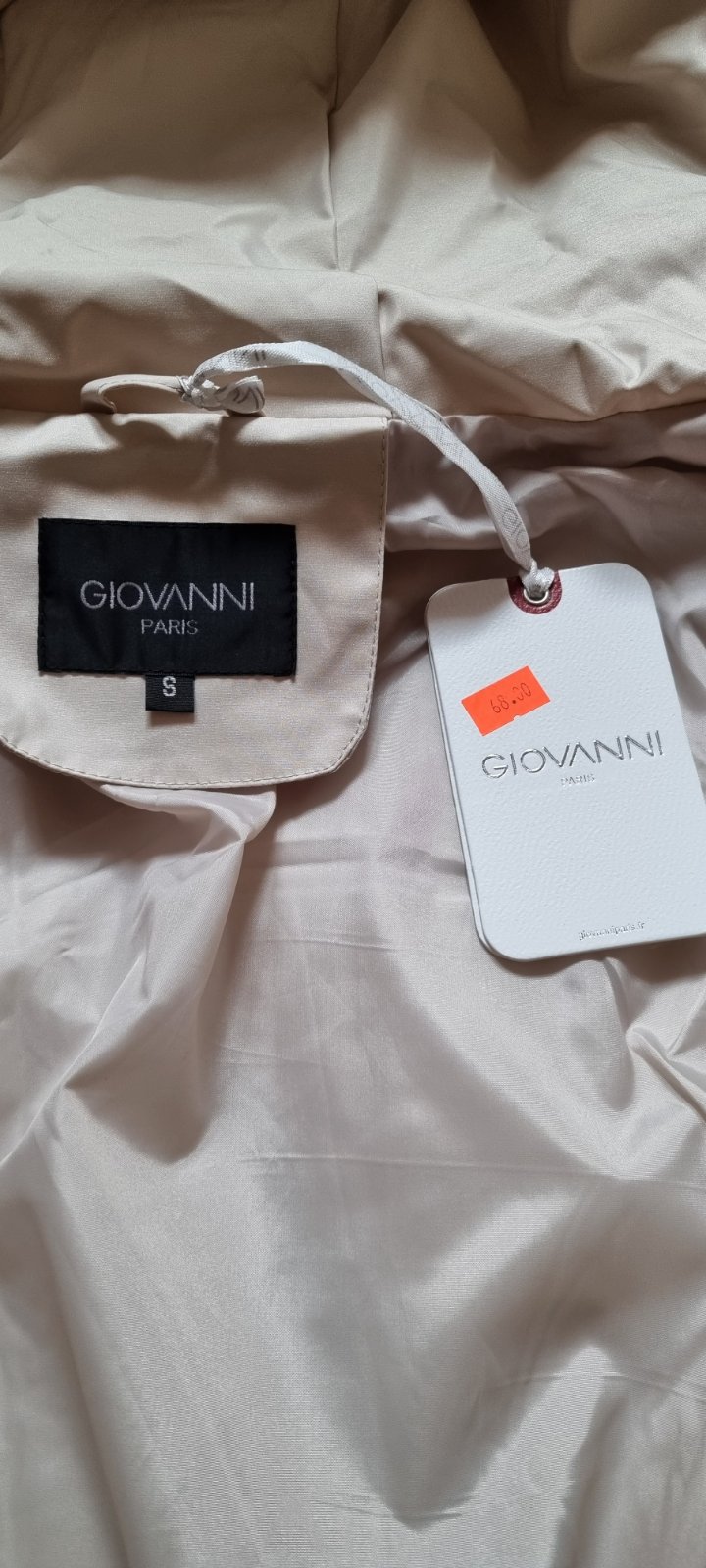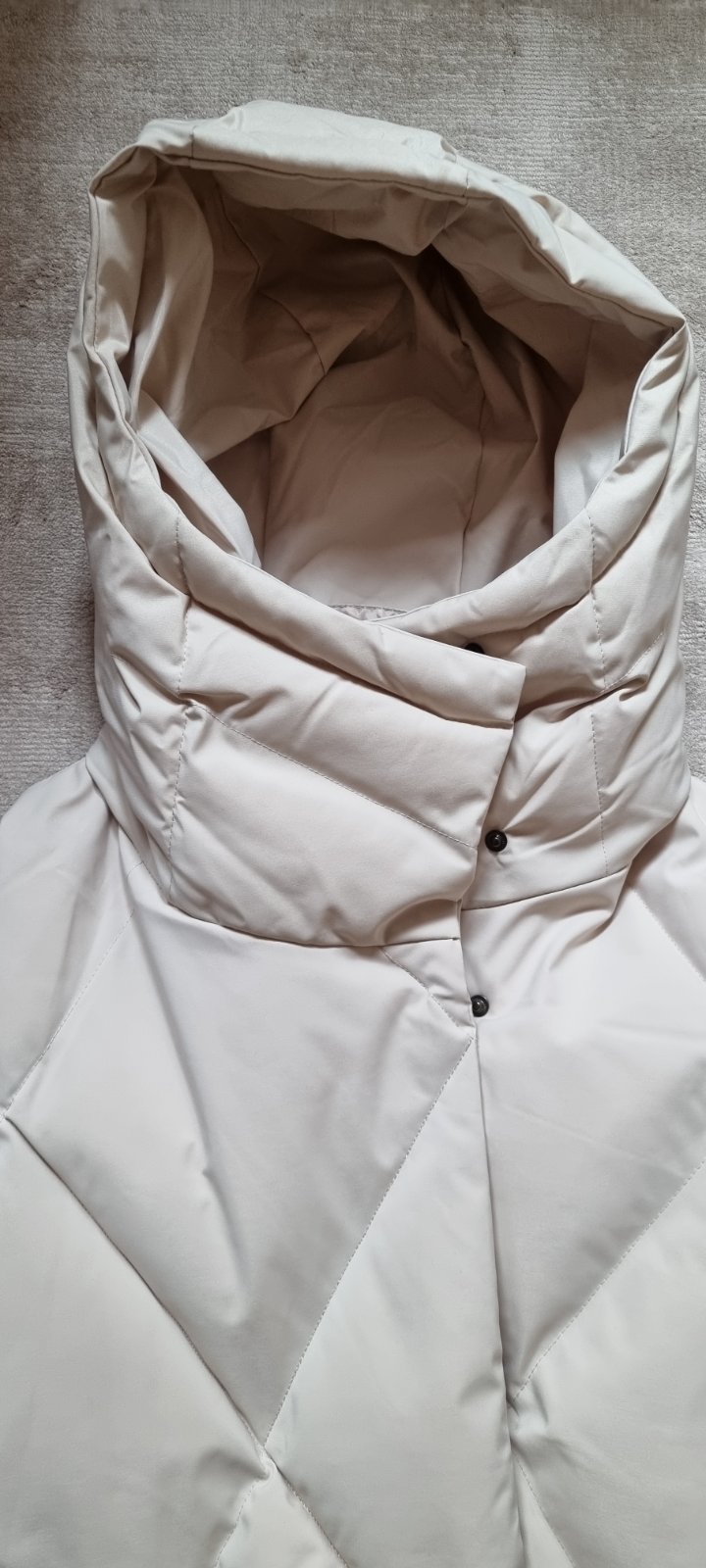 predám dámsku čisto novú zimnú páperovú bundu-dlhú po cca kolená (podľa výšky postavy) talianskej výroby, veľ. S (ale odporúčané mnou pre 40-42vel.), vyteplené umelým jemným materiálom, veľmi módna, s opaskom ktorý sa nemusí používať, vrecká, kapucňa, farba svetlá krémová.