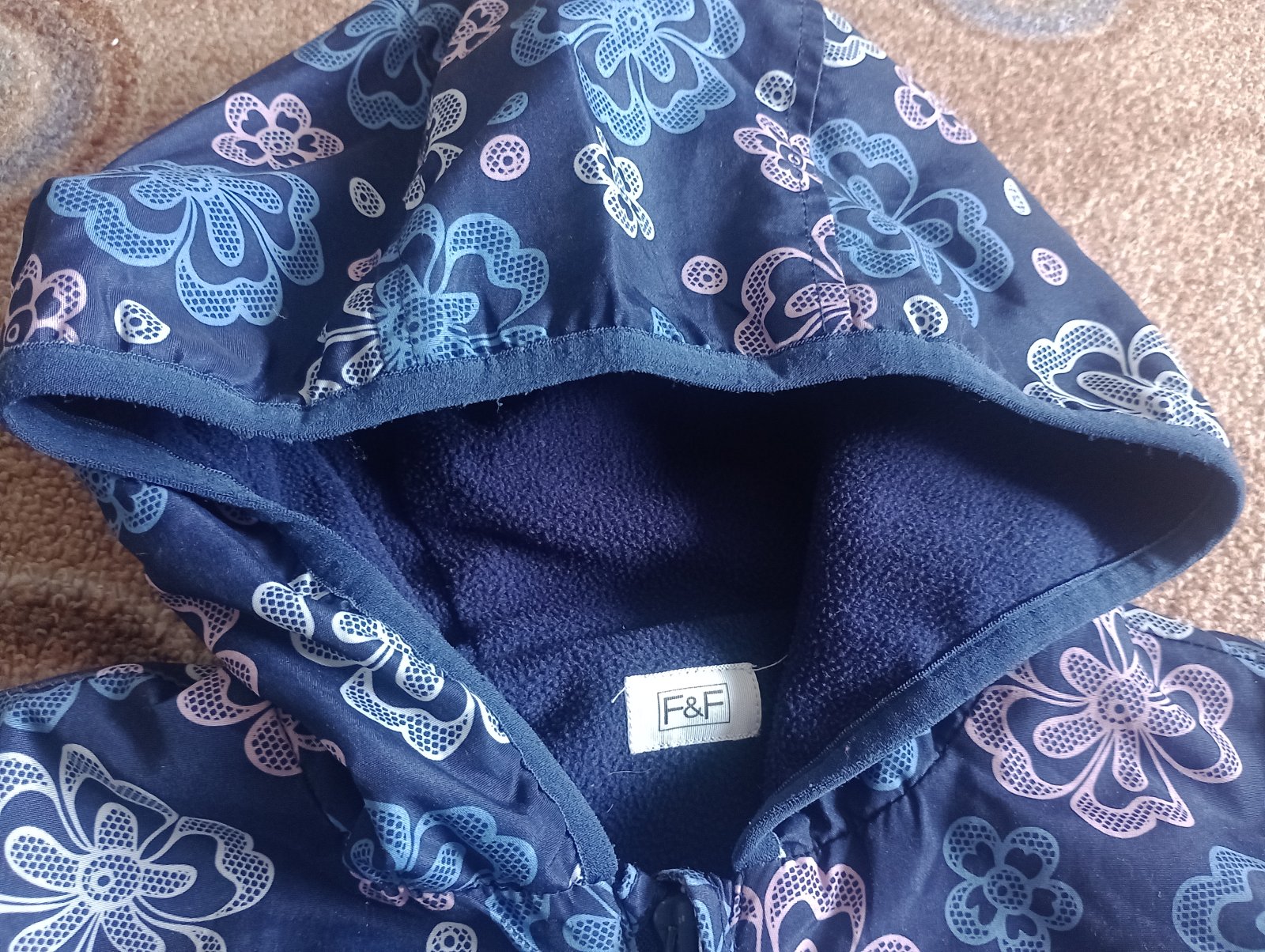 V dobrom stave, má bežné známky nosenia a to žmolky na rukávoch a na zadnej strane dve zatiahnuté očká, takmer to nevidno, všetko je odfotené. Vetrovka je napriek tomu stále pekná.