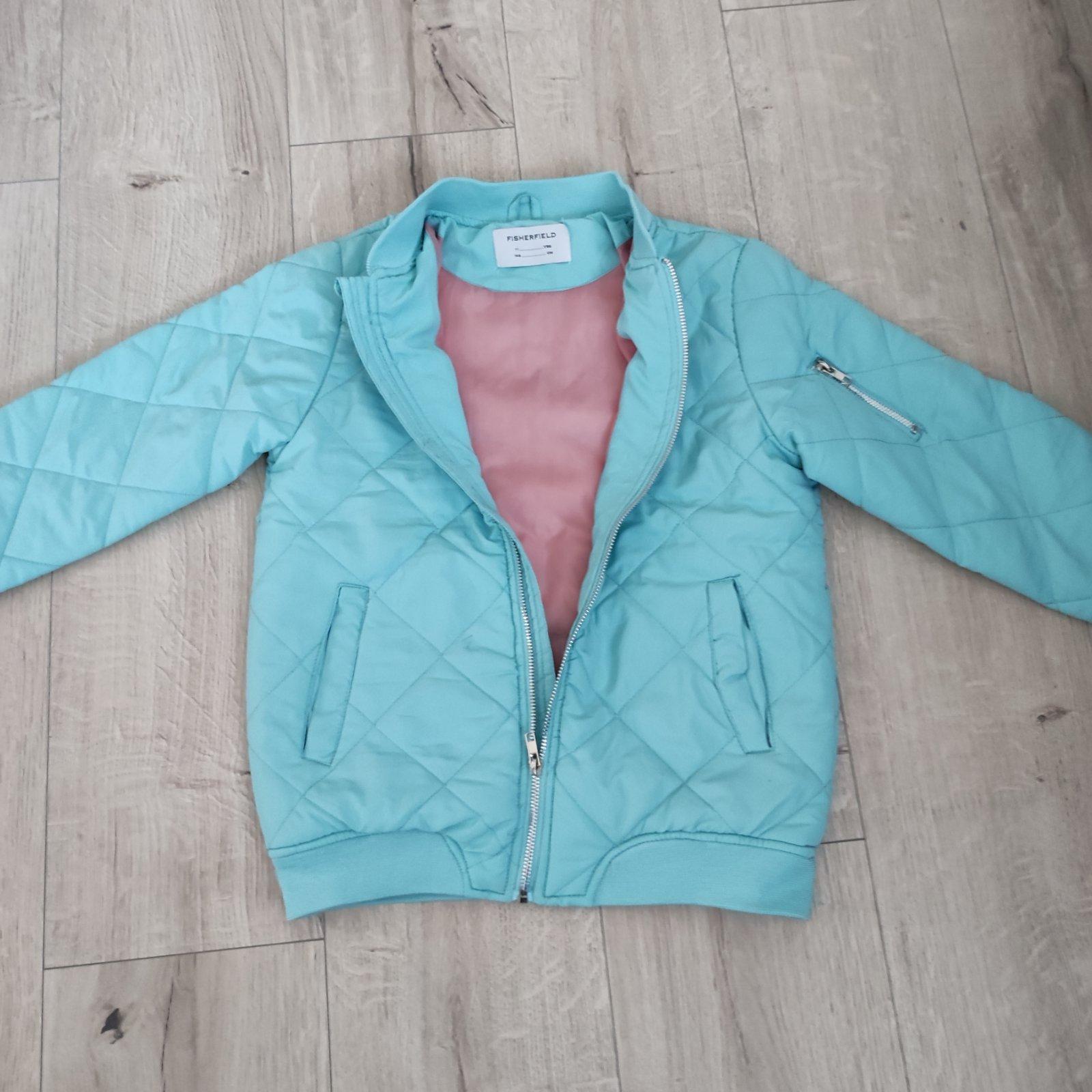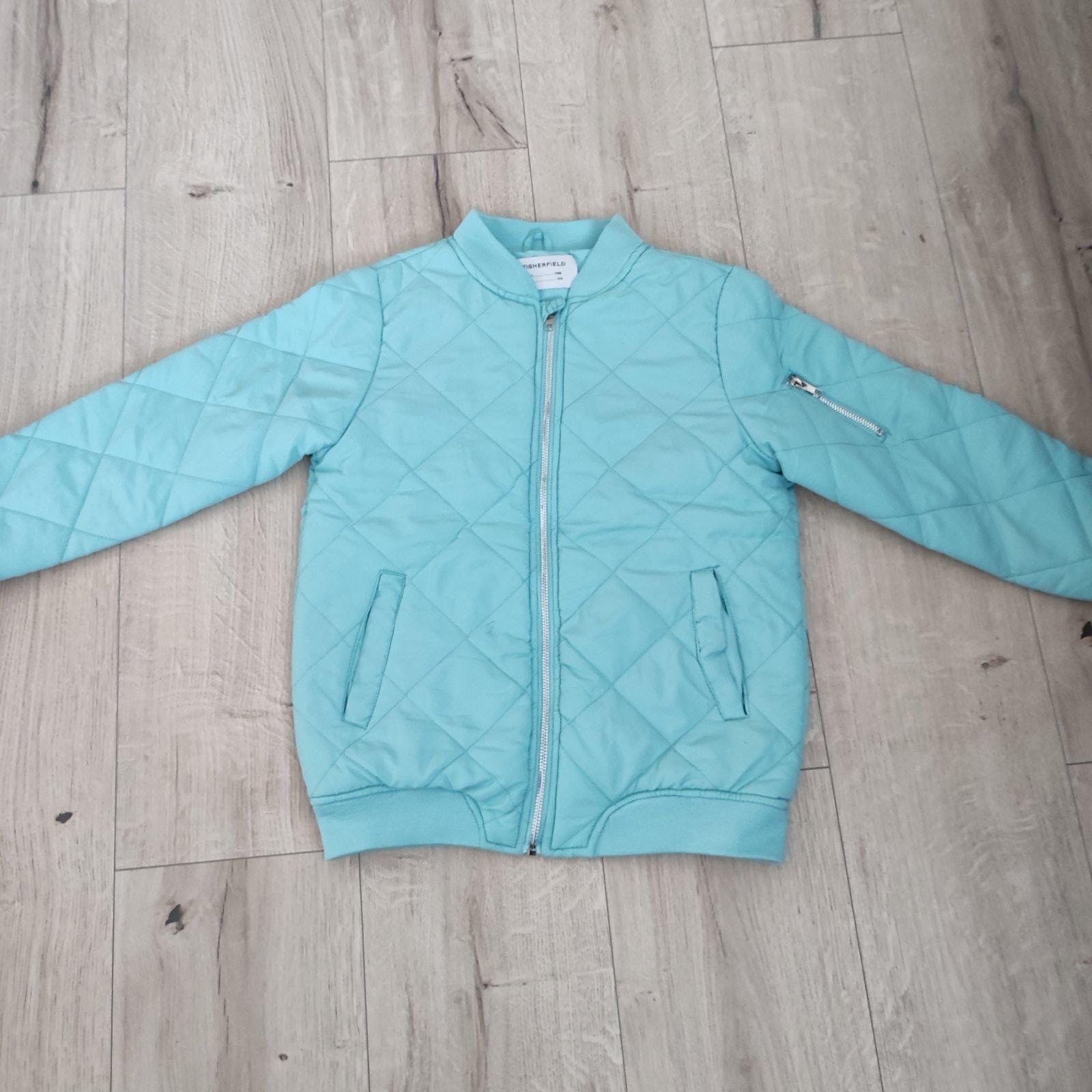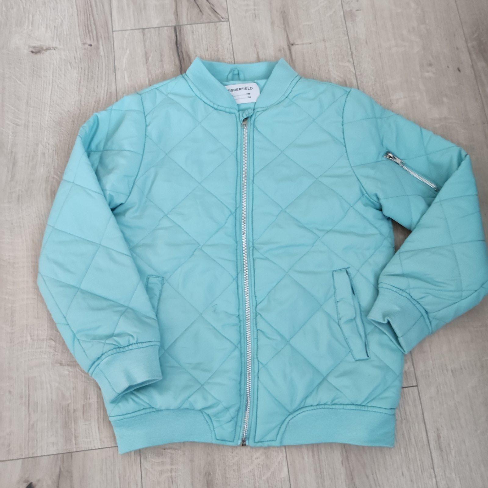 V super stave,farba niečo medzi modrou a tyrkysovou,dĺžka bundy 54,5 cm,šírka pod pazuchami 43,5 krát dva,rukáv meraný od pleca 51 cm,mám v tejto veľkosti aj ružovú