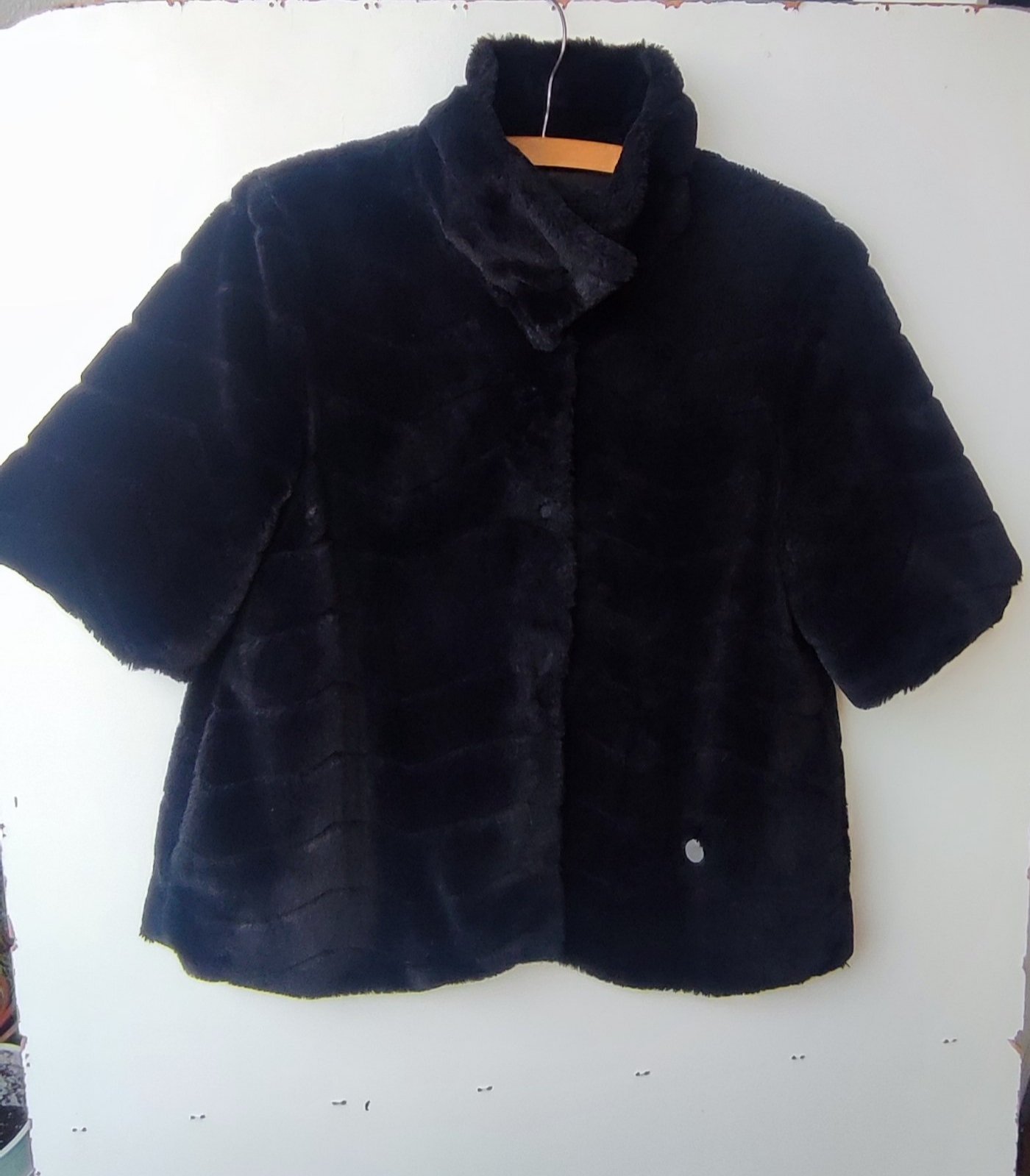 Ponúkam čierne kožené sako, kabát, v. 40/42. Dĺžka +- 95 cm, šírka v podpazuší -+ 52 cm. Veľmi málo nosené, vhodné ako dar. Cena 30,-