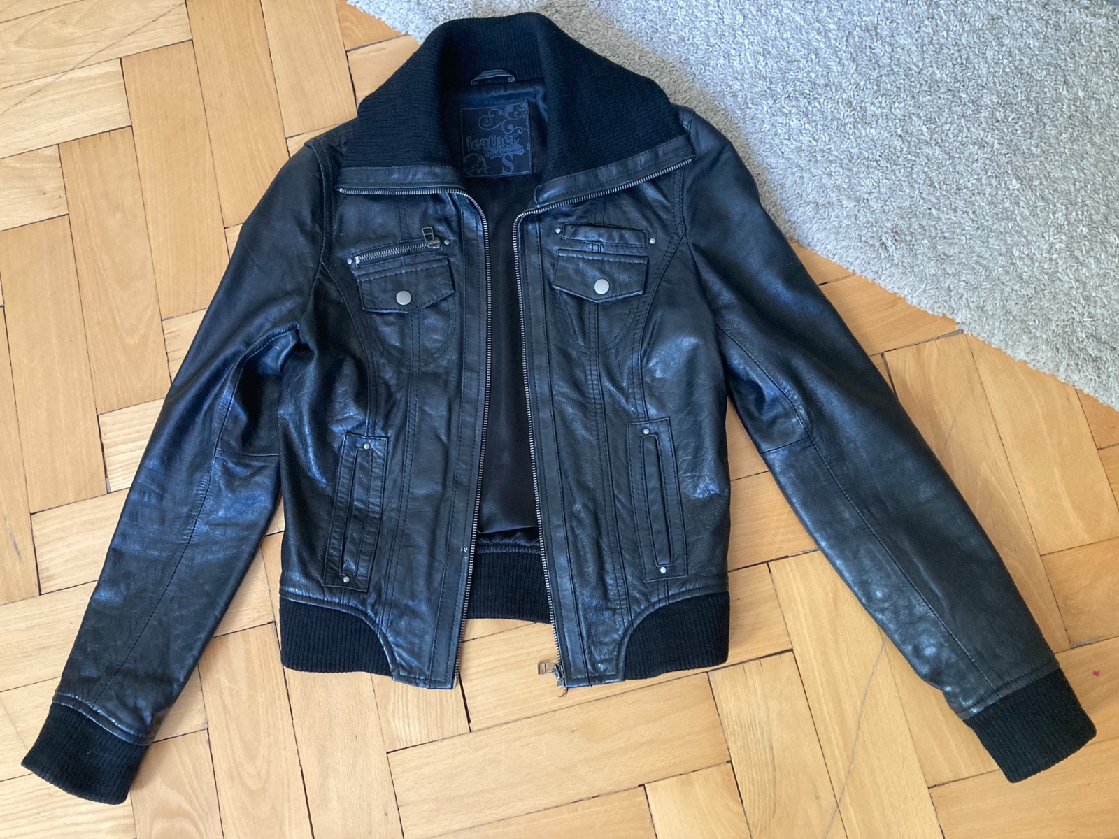 Stradivarius kozena bunda S prava koza cierna Malo nosena Pod pazuchami cca 47cm a dlzka cca 58 cm