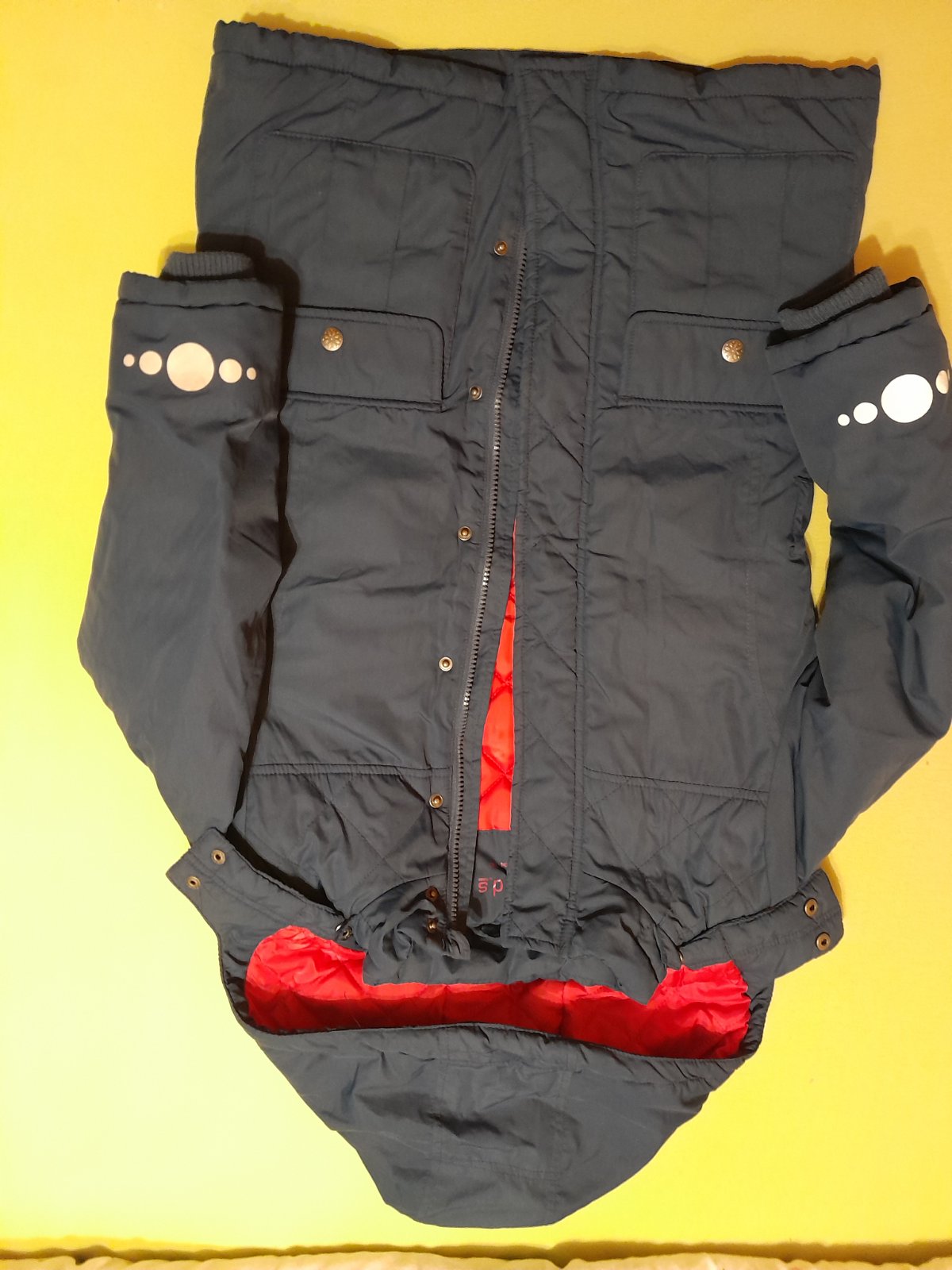 Veľkosť 8-9 rokov, dĺžka rukáva 61 cm, dĺžka bundy 53 cm. Nepoškodená, obojstranná bunda, pôvodná cena 100€.