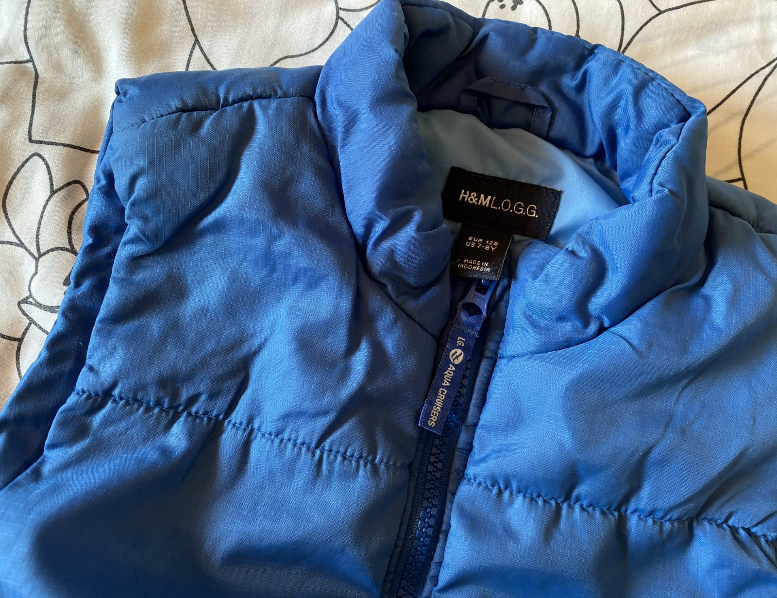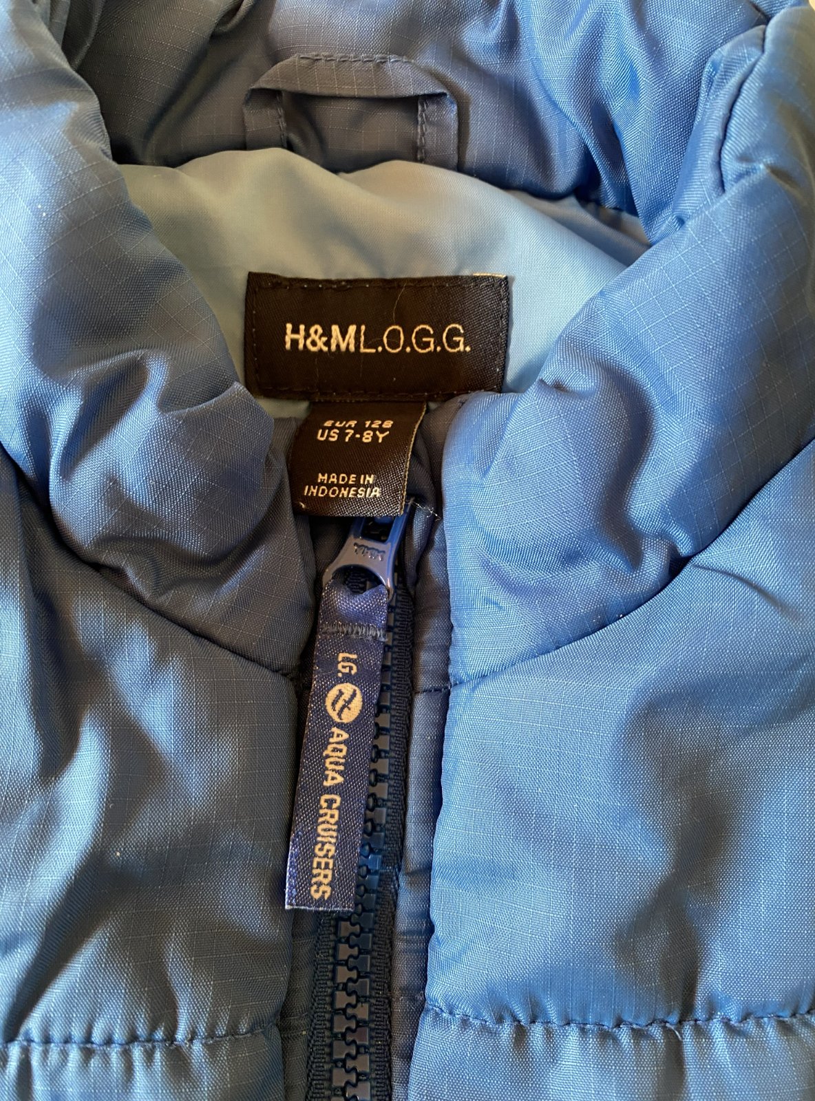 Prešívaná zateplená vesta H&M - Aqua Cruisers v. 128, má 3 vrstvy - vrchný materiál a podšívka 100%Polyamid, vnútorné zateplenie výplň 100% polyester, vrchný materiál kocečkový vzor, vredu 2 funkčné vrecká, z vnútornej strany vrecko, vredu zapínanie na zips s krytím krku, v peknom nosenom stave.