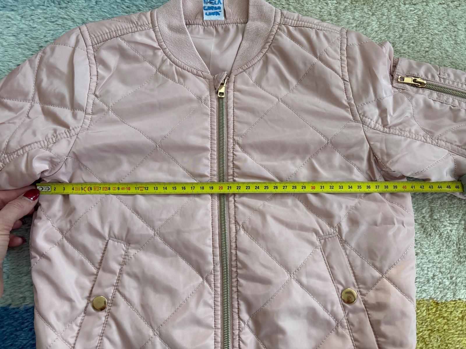 Predám krásnu bundu po neterke, kupovaná nové, nosena jednu sezónu, poškodenia nemá. Rozmery na foto. Veľkosť píšu 128 ale za nás skôr 122 (kvôli dĺžke rukávov).