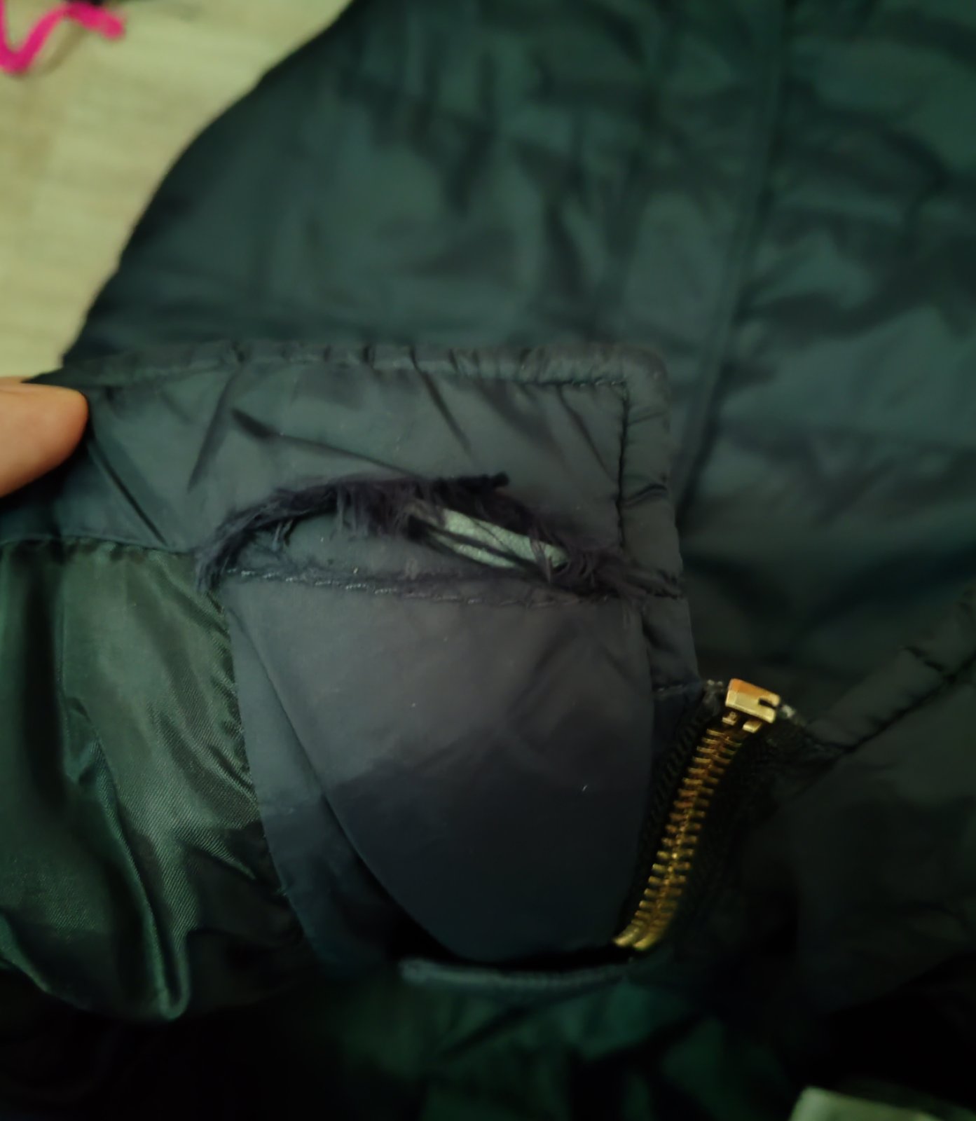 Pekný stav. Jediná vada diera z vnútra pri vrecku. Vid foto