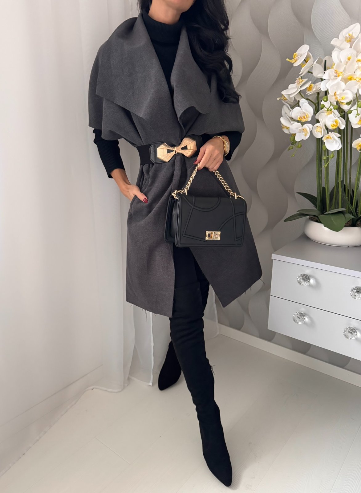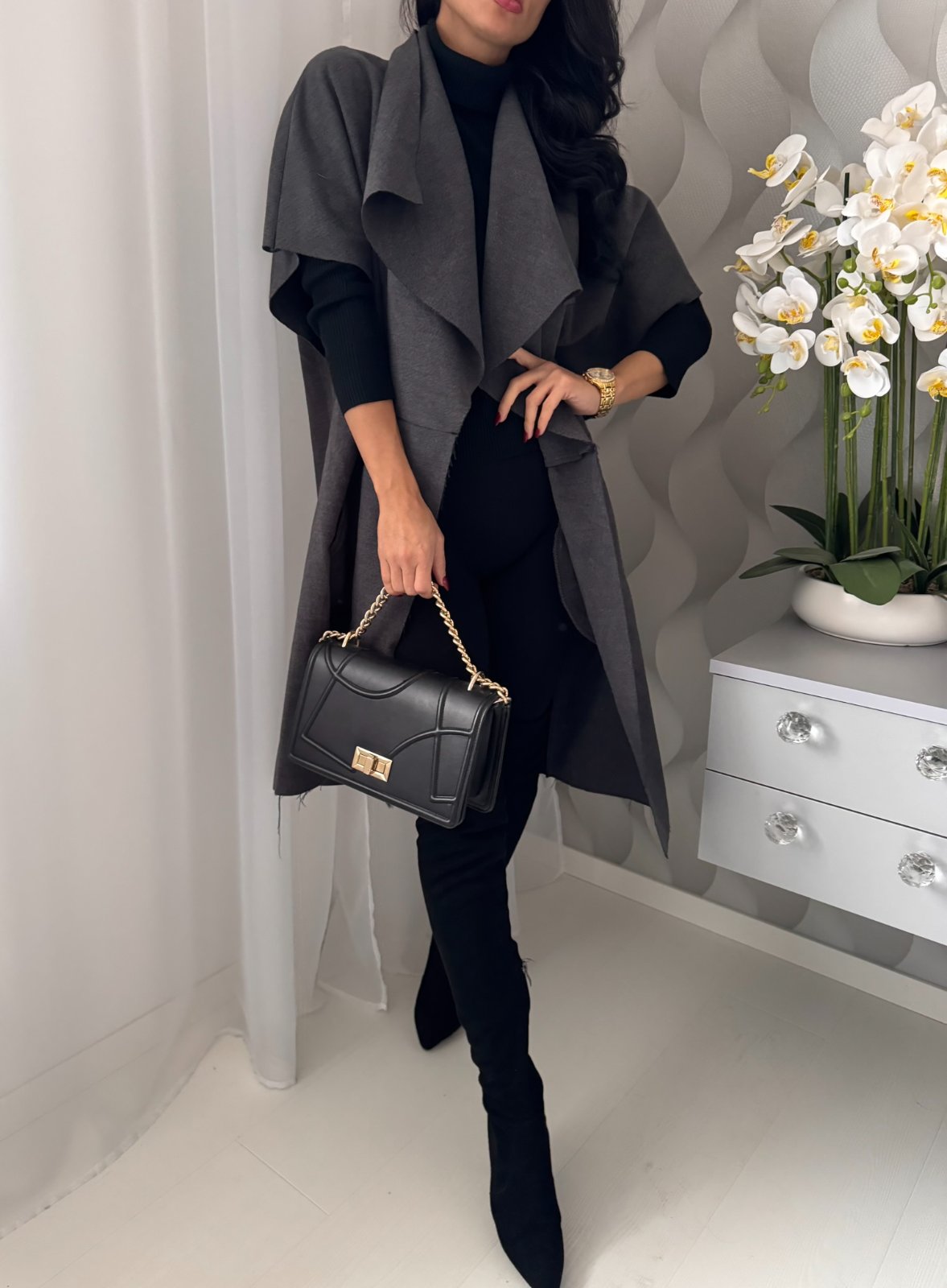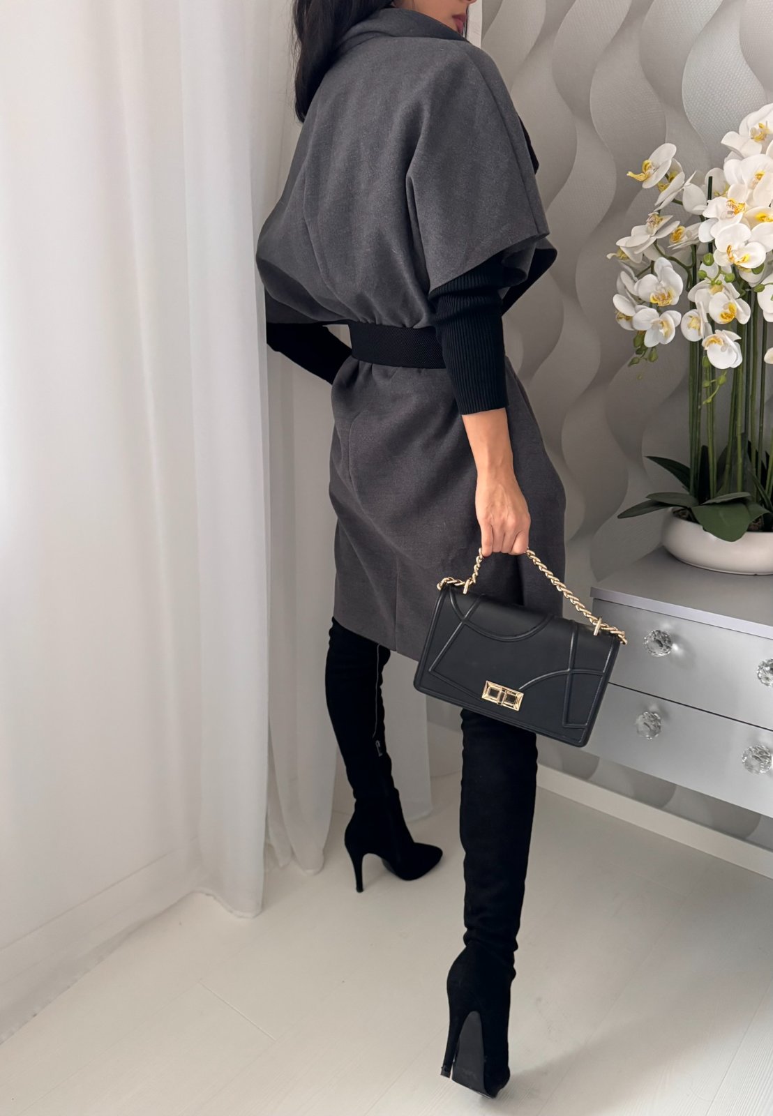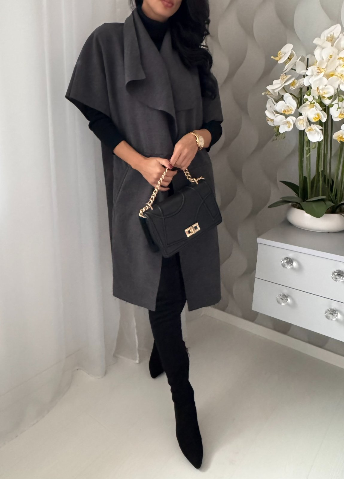 Prechodná predĺžená vesta s podielom vlny.