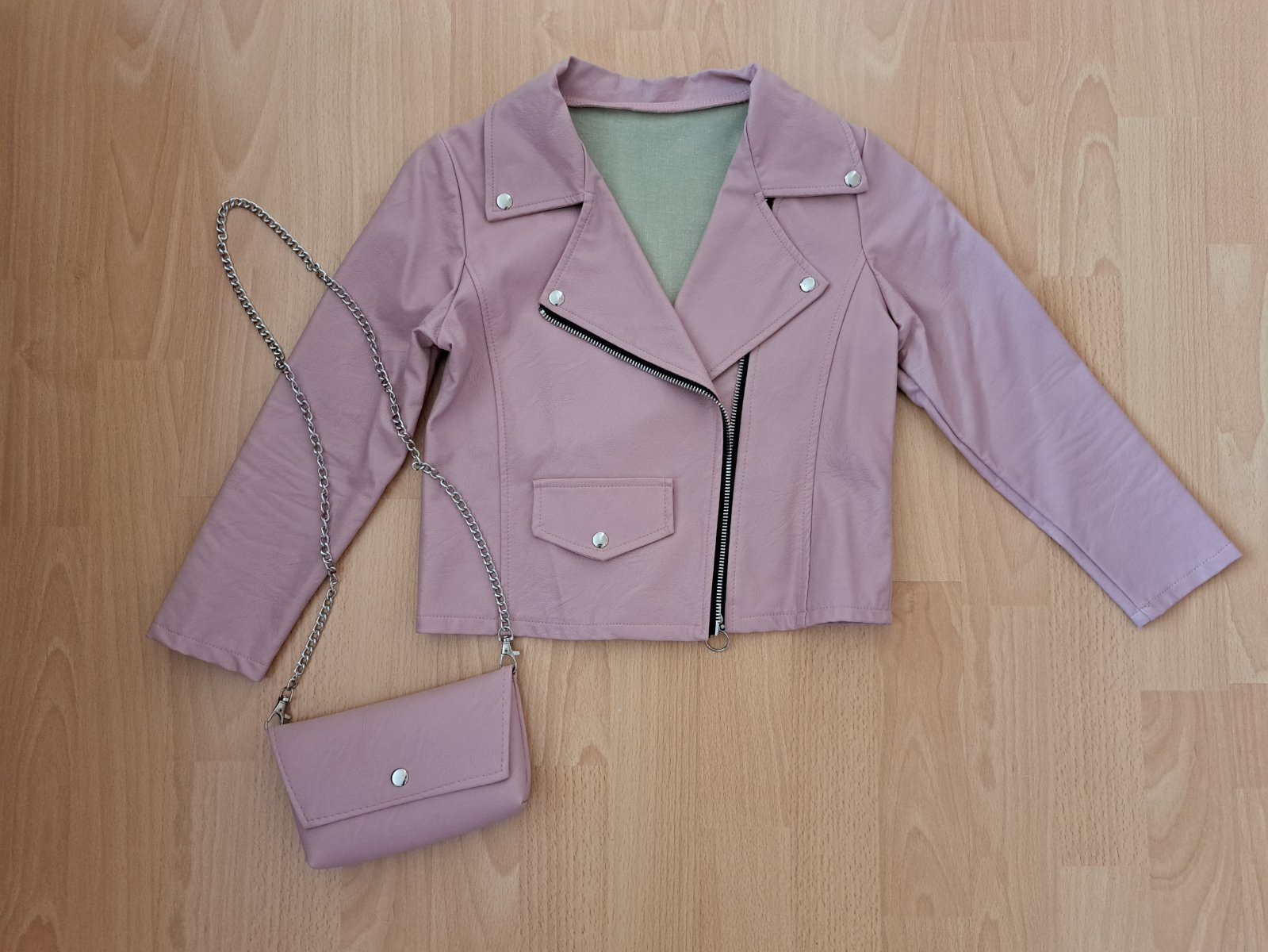 Koženková bunda vo výbornom stave oblečená tak 3 krát.Je k nej aj kabelka na foto.