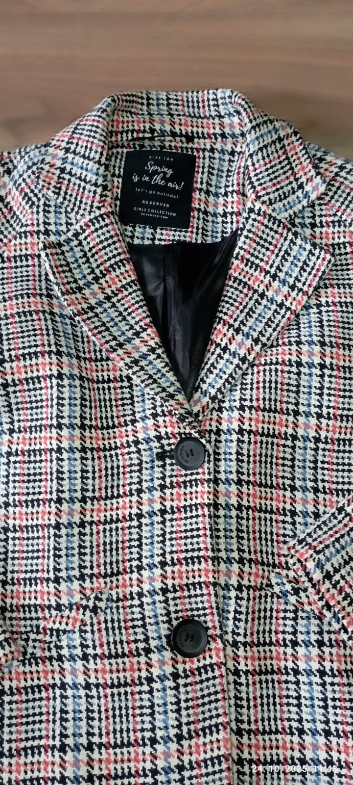 Predám kárované sako, veľkosť uvedená 134, značka Reserved.