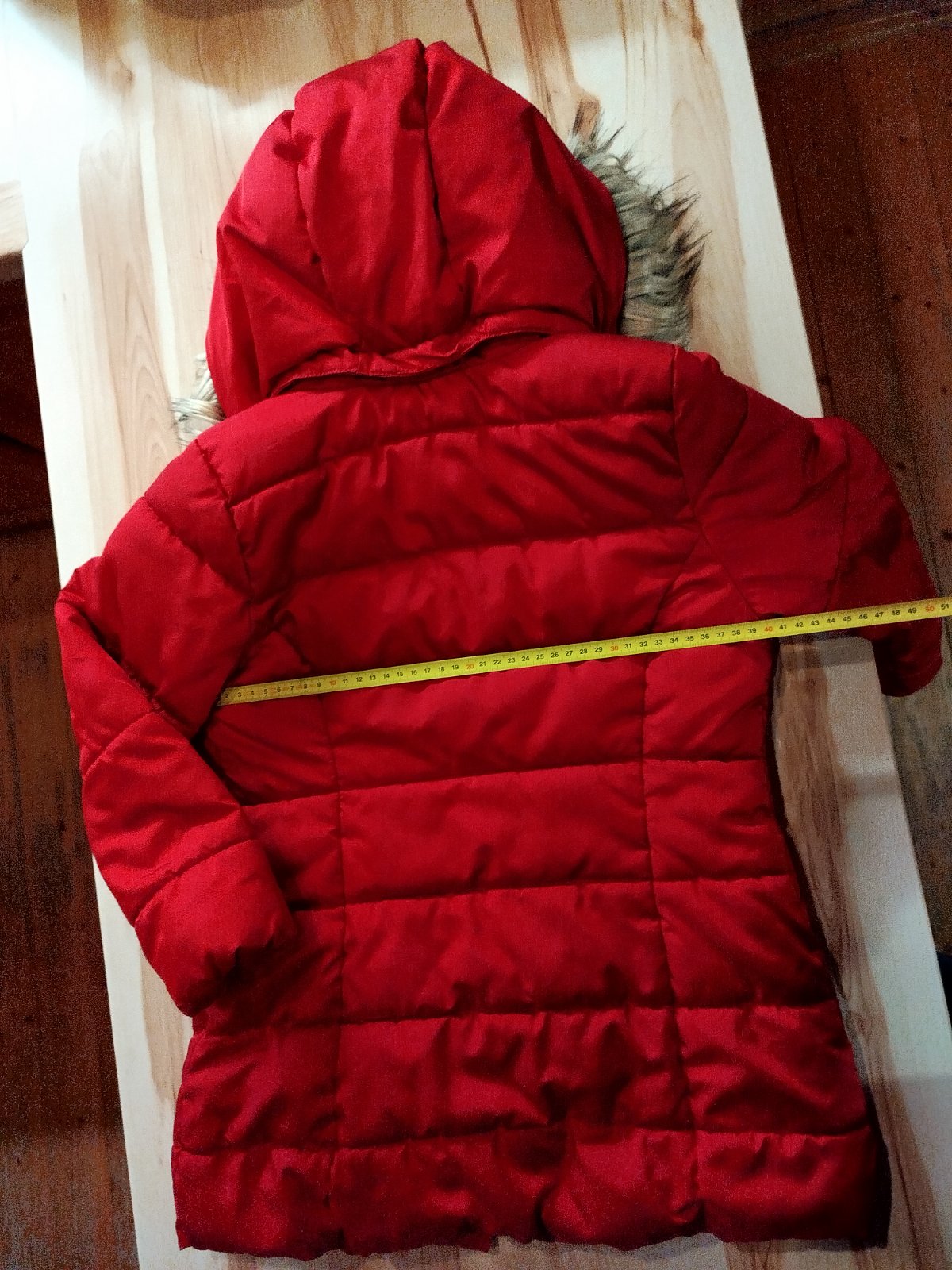 Bunda zimná ZARA krásnej tmavočervenej farby, zachovalá, odopinatelna kapucna, ma malé chybičky, viď foto trošku zahrnutá nitka ,vnútro podšitá teplým flisom ale na donosenie ešte poslúži