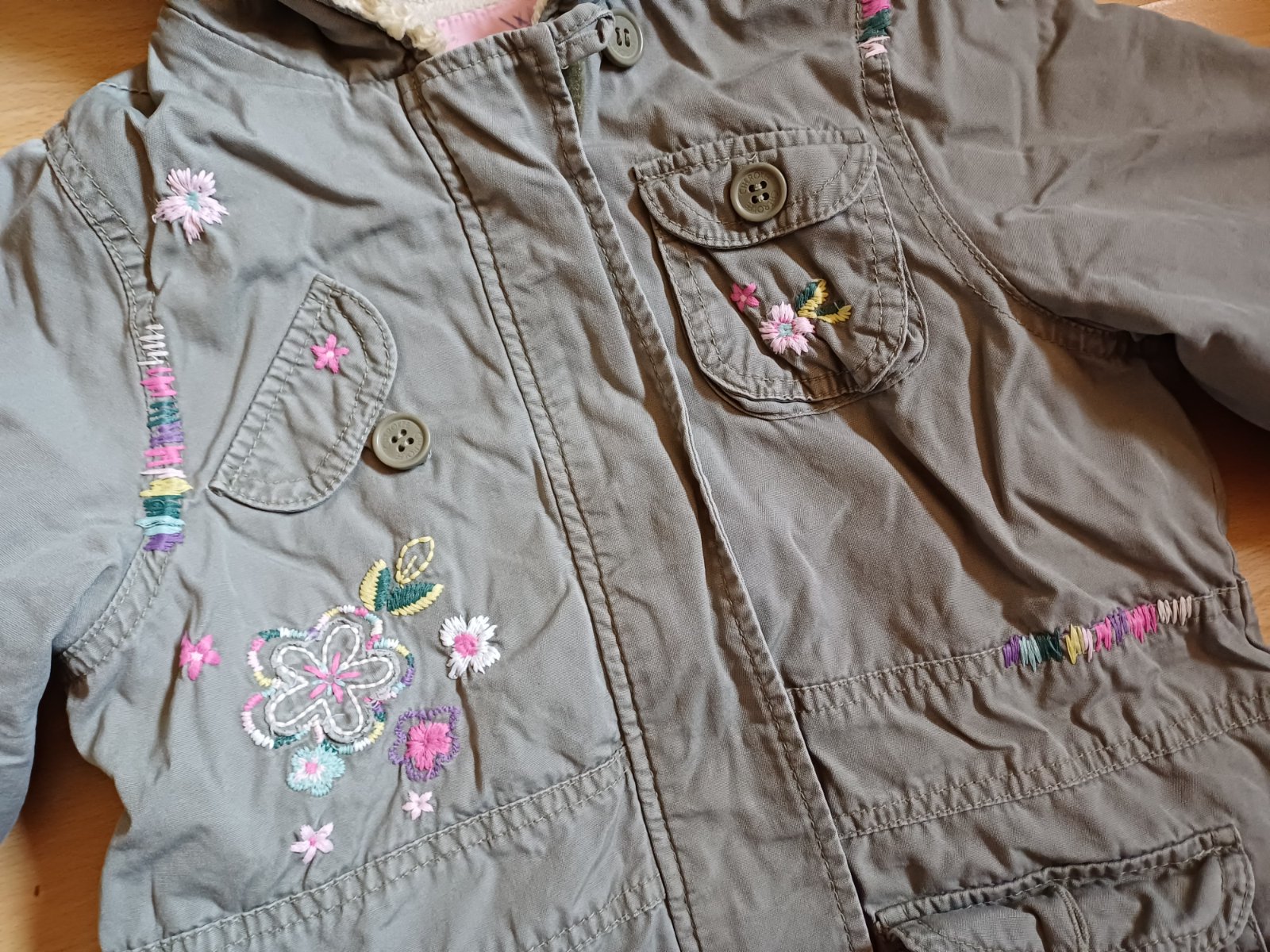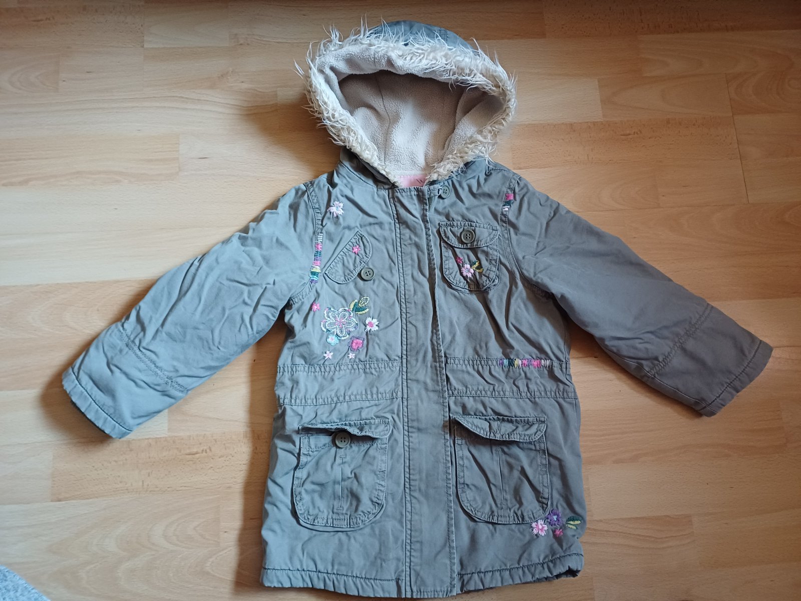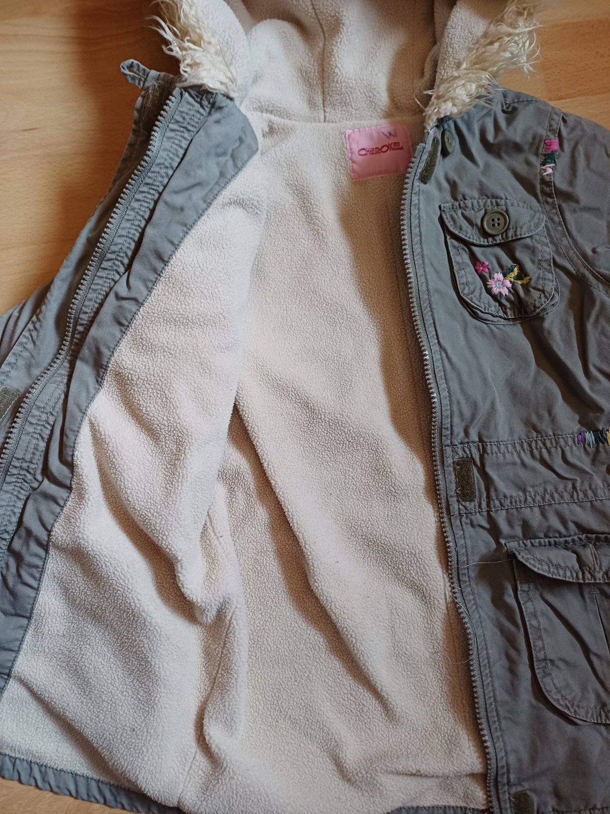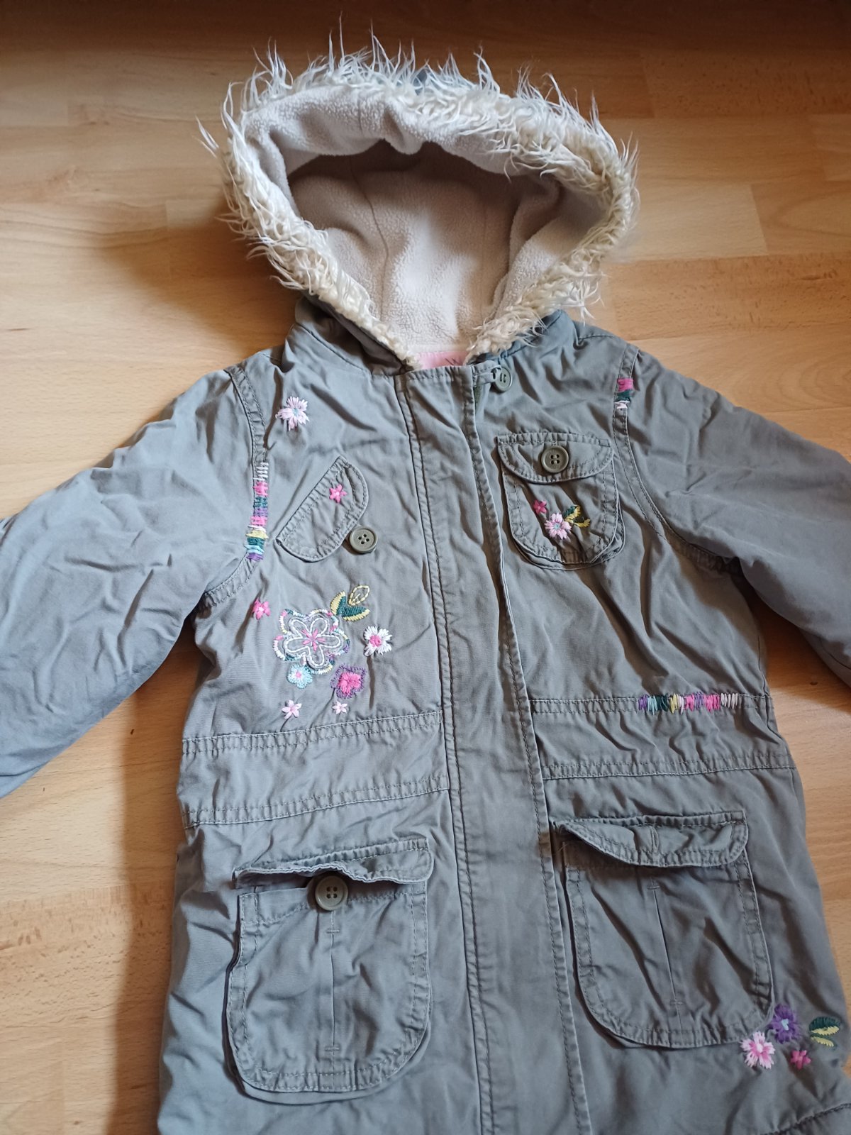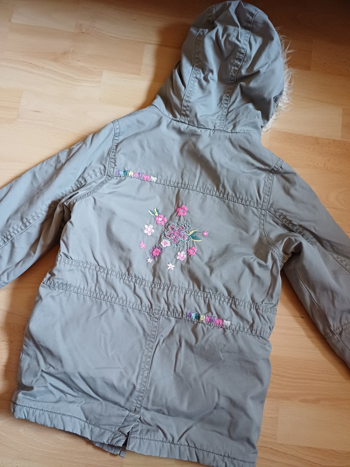 Teplejsia prechodna bunda, nema ziadne vazne poskodenia ale uz na nej trocha nosenie vidno, tak na dvor, na ihrisko este posluzi