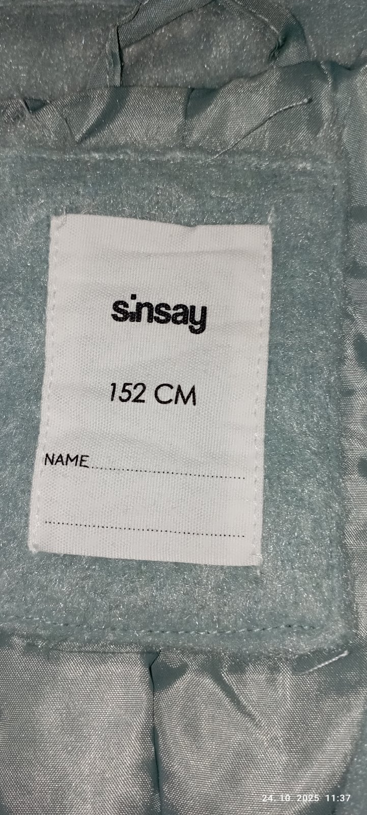 Predám bledomodrý kabátik, značka Sinsay, veľkosť uvedená 152.