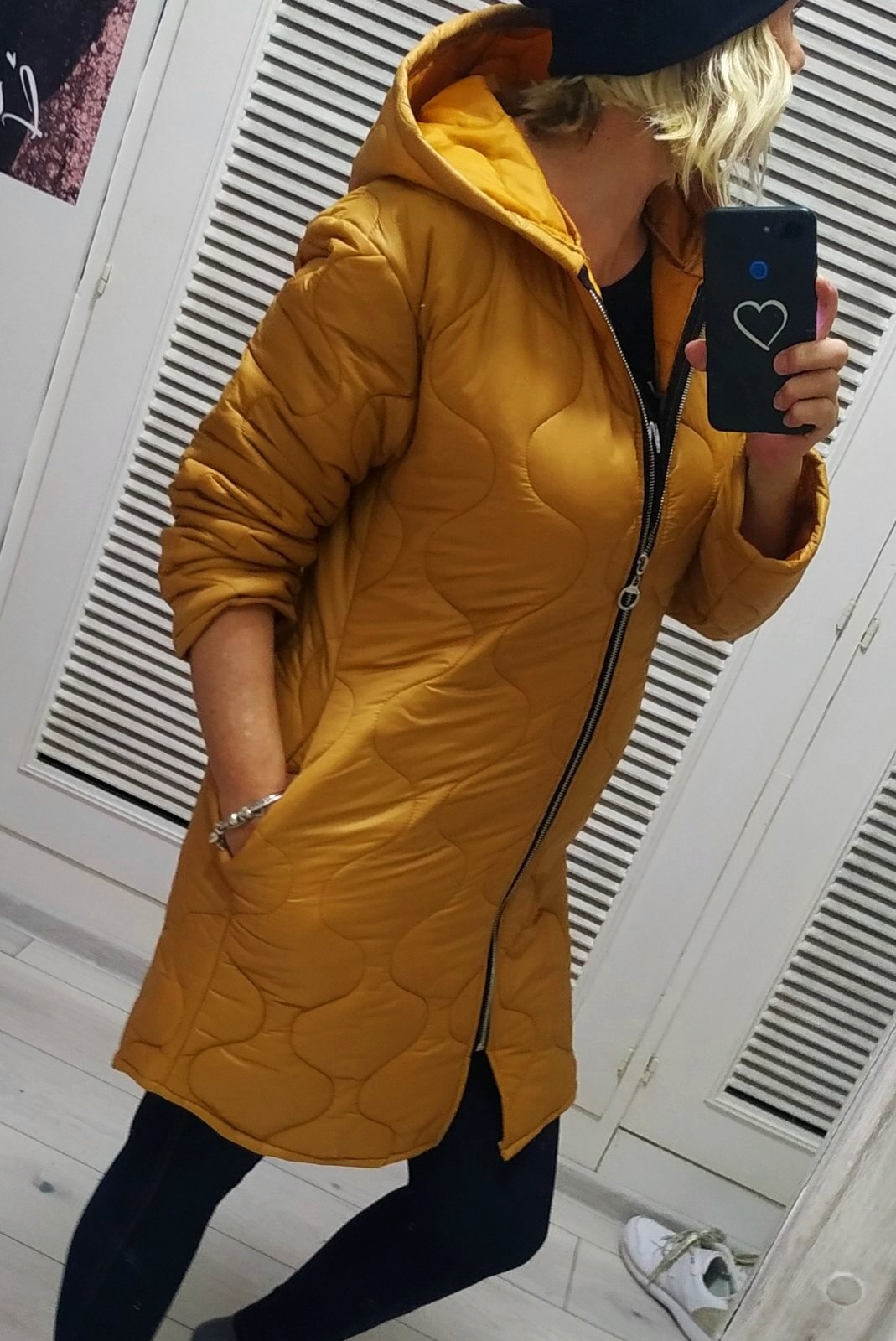 Ľahučký prešívaný kabát krásnej karamelovej farby,Uni veľkosť, sedí na S,M,farba na postave je skreslená umelým svetlom...reálna farba je na úvodnej fotke