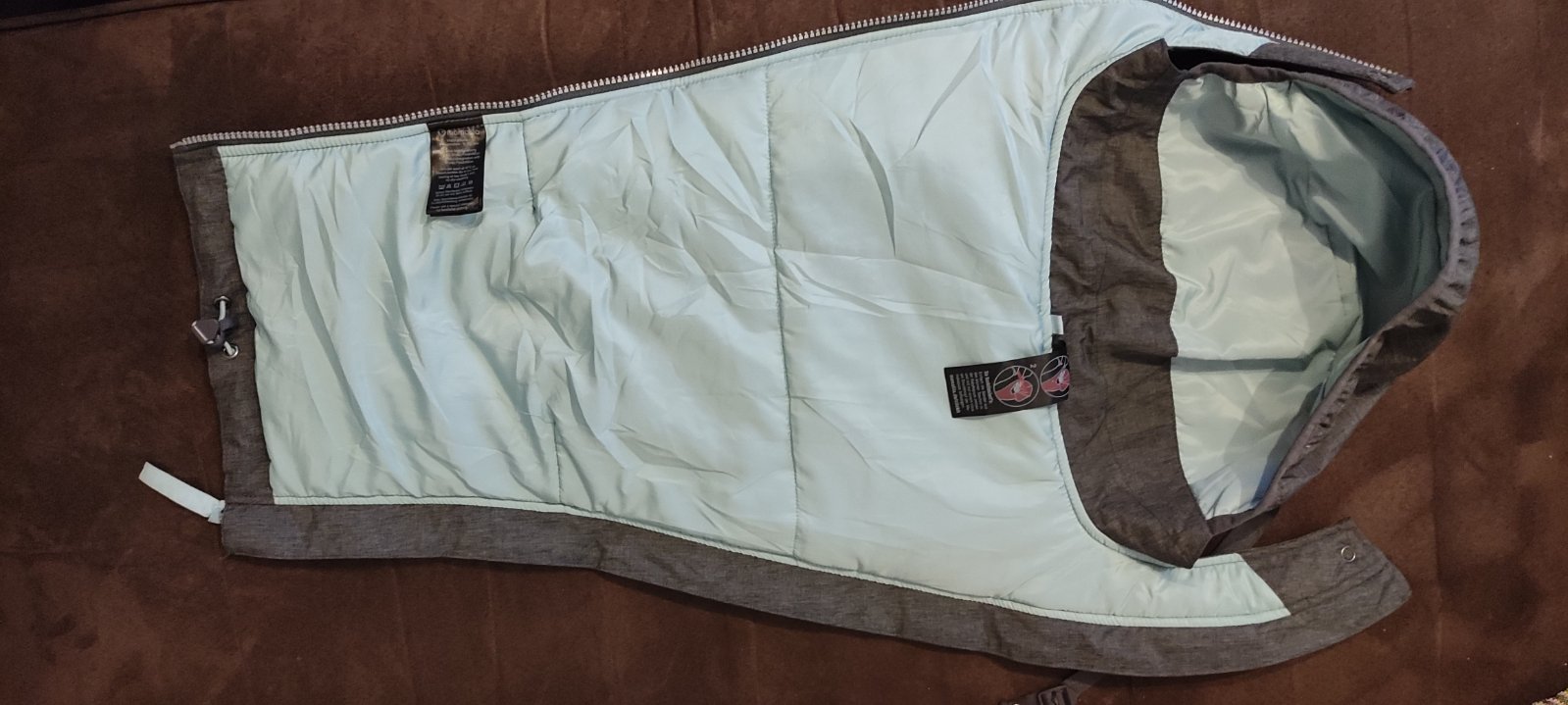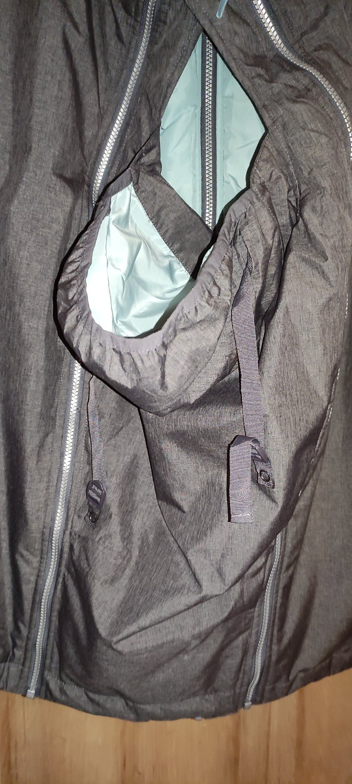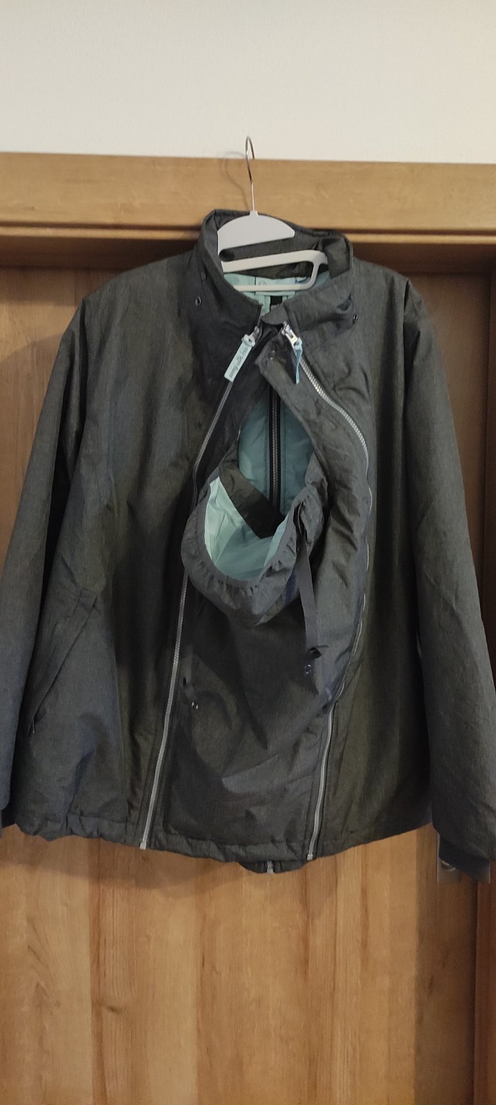 Zimná bunda zn. Mamalila, veľkosť XL. Nosenie vpredu aj zozadu. Je bez poškodení, kapucňu som ale niekde stratila. Zvnútra fliačky od topánok, snažila som sa odfotiť 🙂. Cena s poštovným.