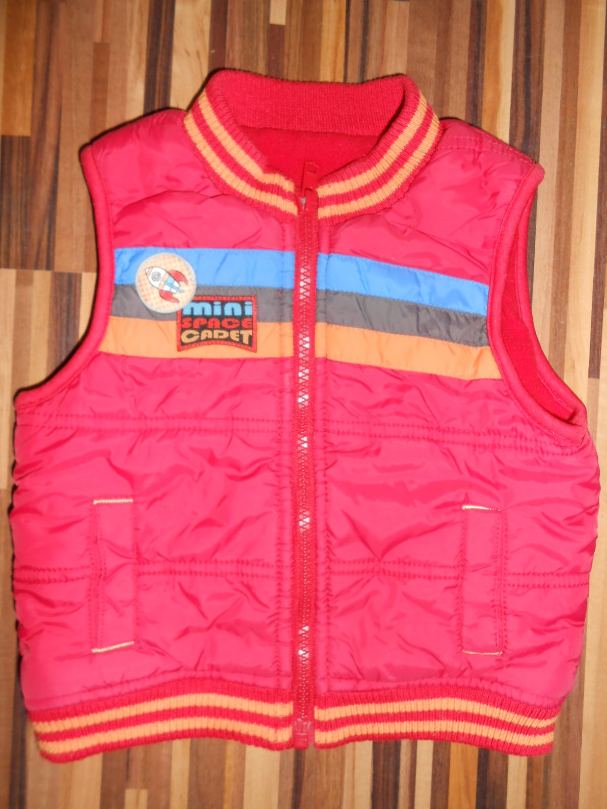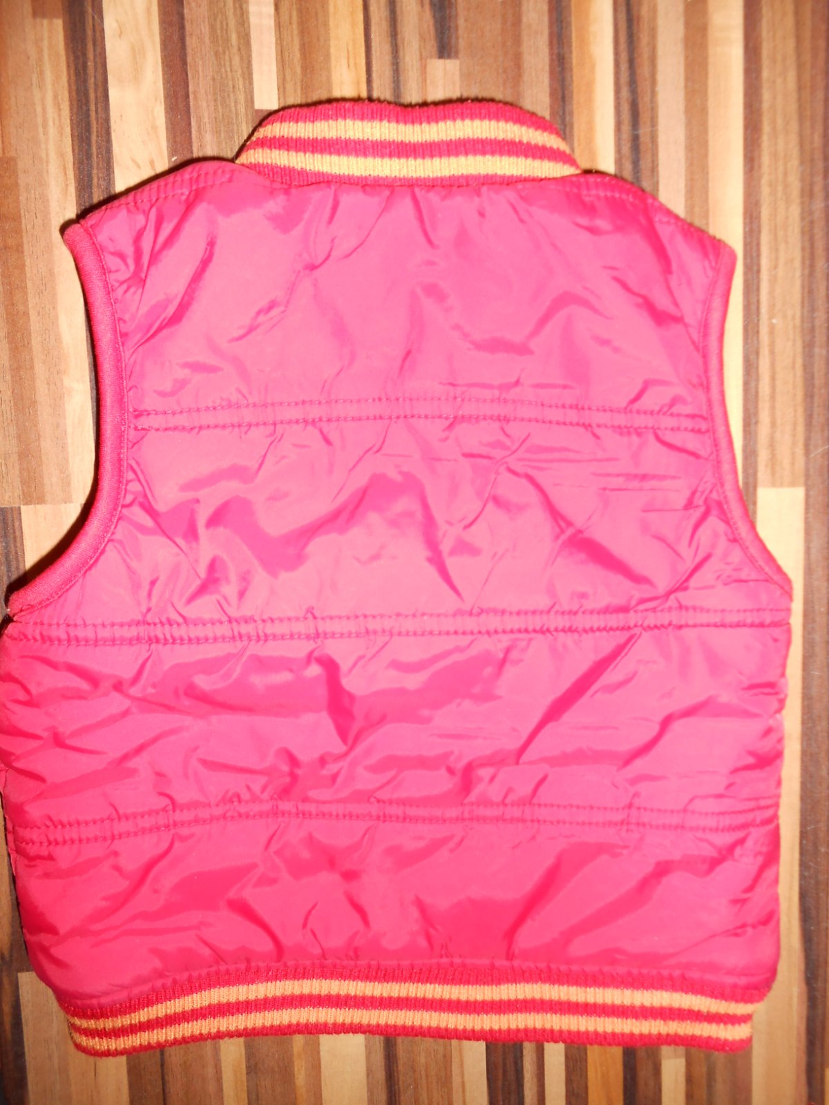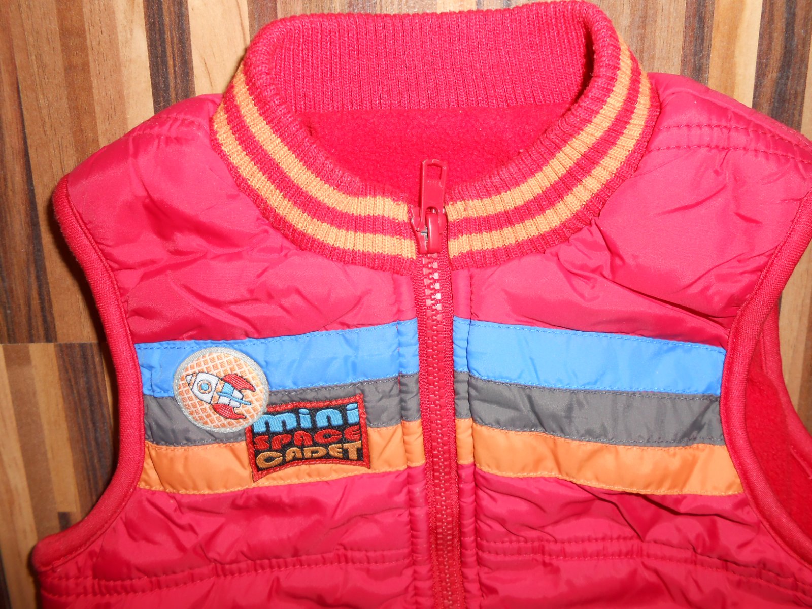 Vesta červenej farby (vhodná na jeseň, teplejšiu zimu), nosená minimálne, takže stav veľmi dobrý, farba je pekná červená. Veľkosť 12 - 18mes./86, značka George, vpredu funkčný zips, bez fľakov, bez dier, na patentoch minižmolky ( no nie je ich veľa a dajú sa odstrániť). Šírka podpazušia 32 cm x 2, dĺžka 32 cm. Cena + poštovné (D)