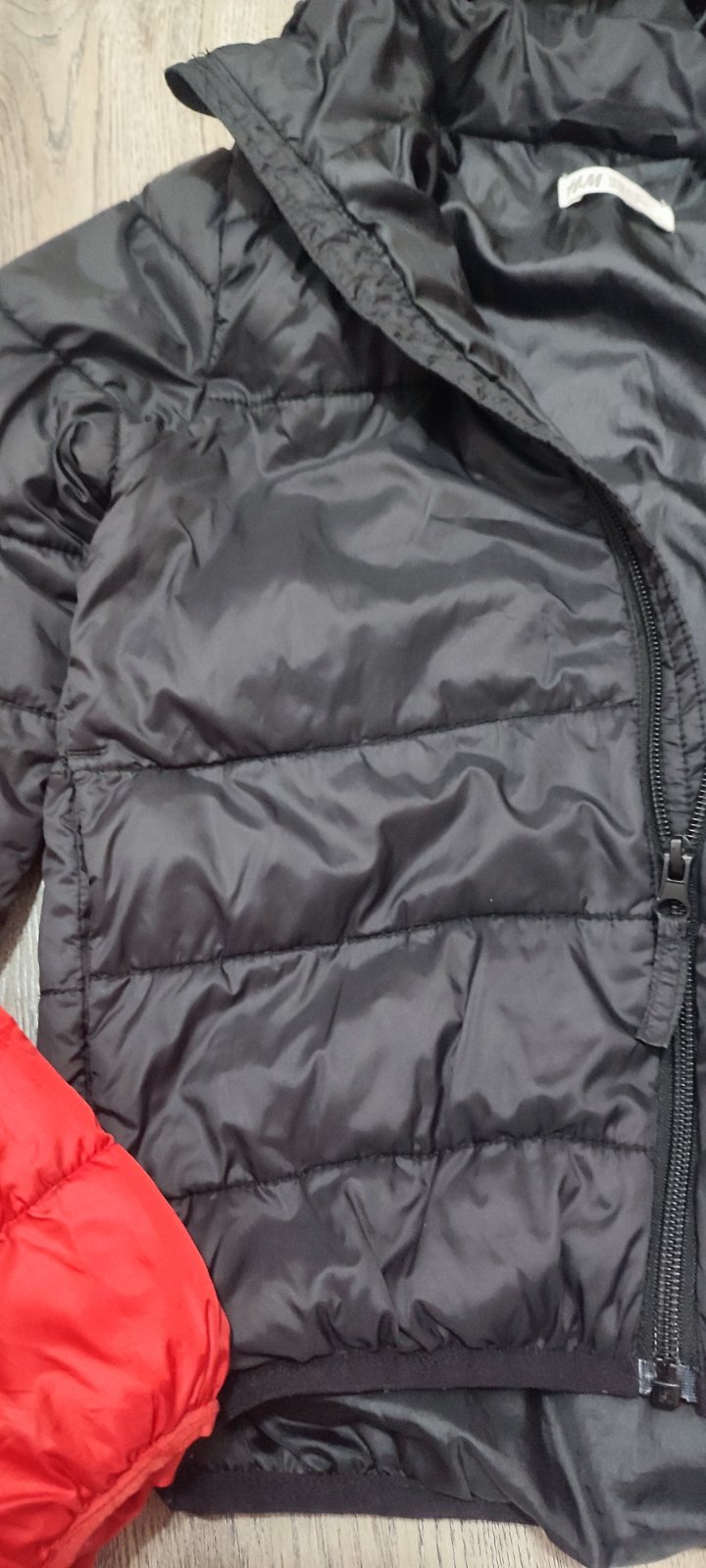 Červená super stav. Čierna nosená častejšie, nemá žiadne vážne poškodenia. Len výplň už nieje ako od nova. Veľkosť 122/128. Nositeľné od tej 122, 6 rokov. Cena a predaj spolu.