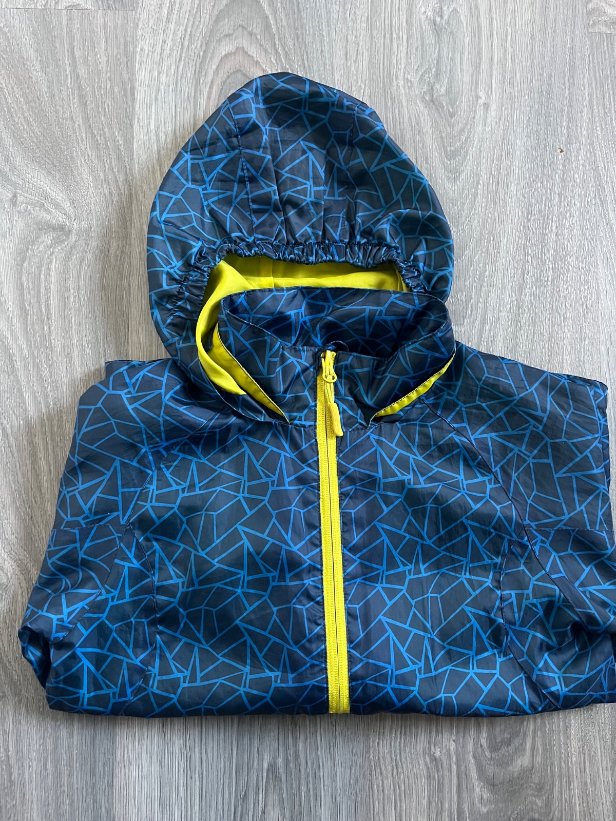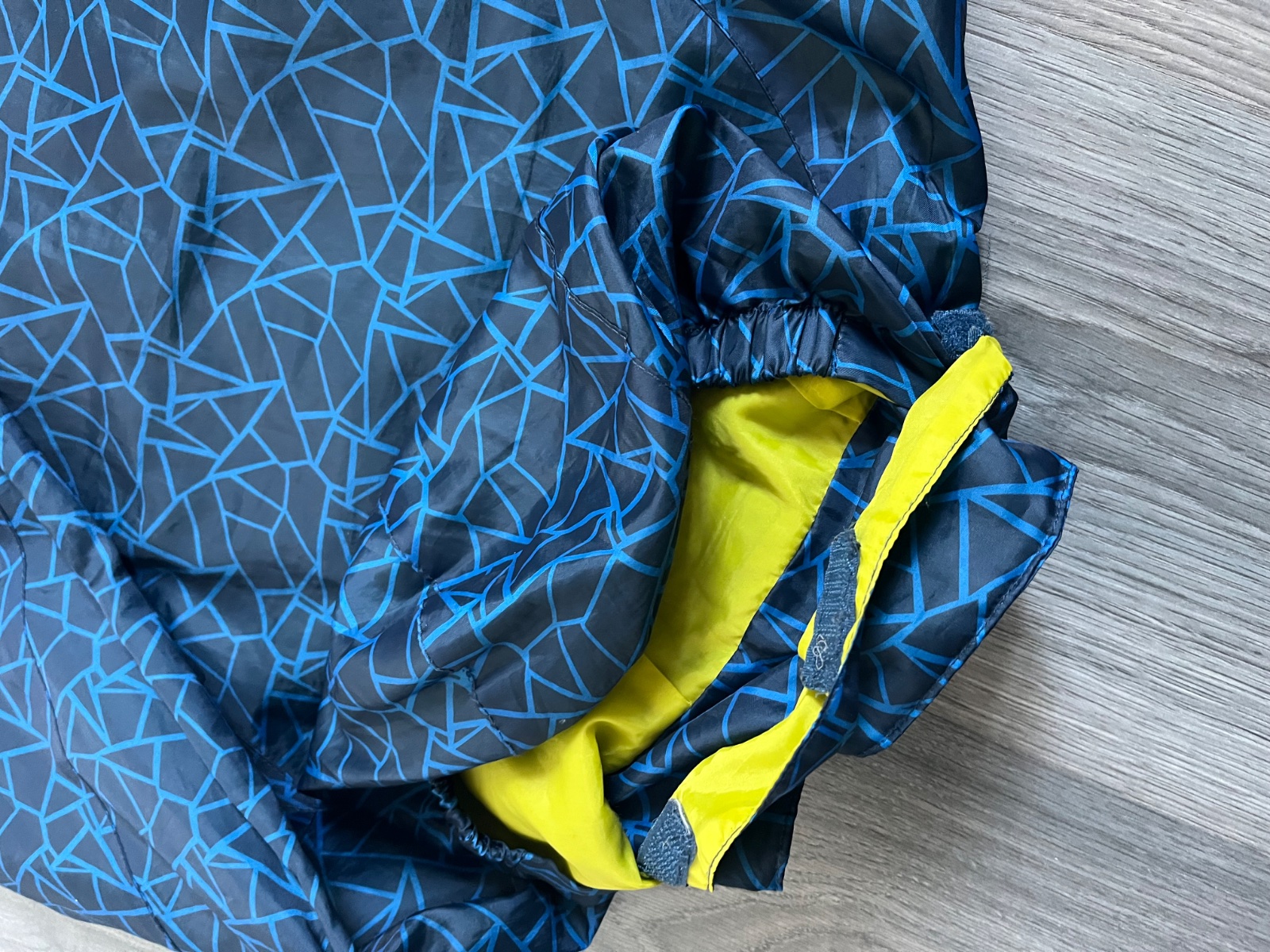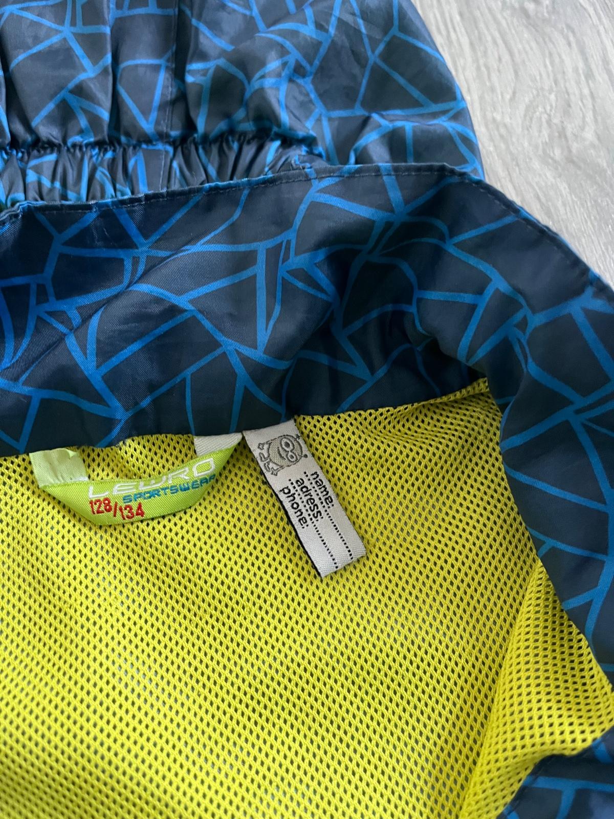 Vzdušná, ľahučka športová bunda, kapucňa sa môže schovať/zabaliť, vo veľmi dobrom nosenom stave, veľkosť 128/134