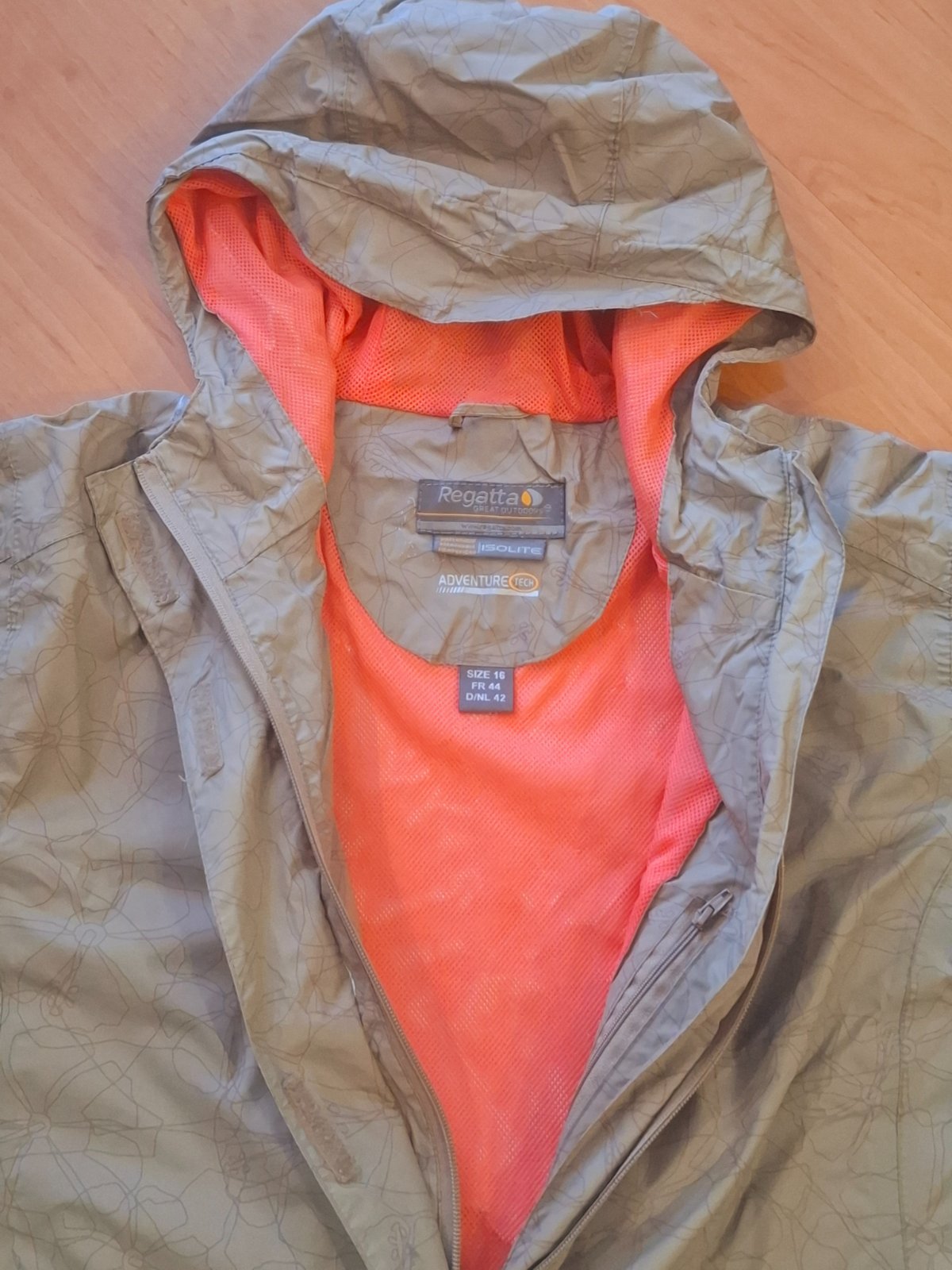 Jarná tenšia bunda. Bledá farba. Oblečie hrud tak 106/107cm. Nosena ešte poslúži. Vyšší golier. Nepodsita. Veľkosť 40/42.