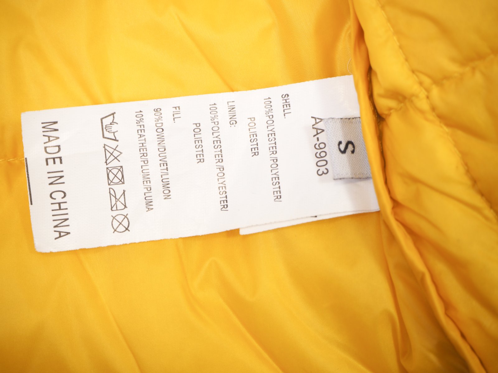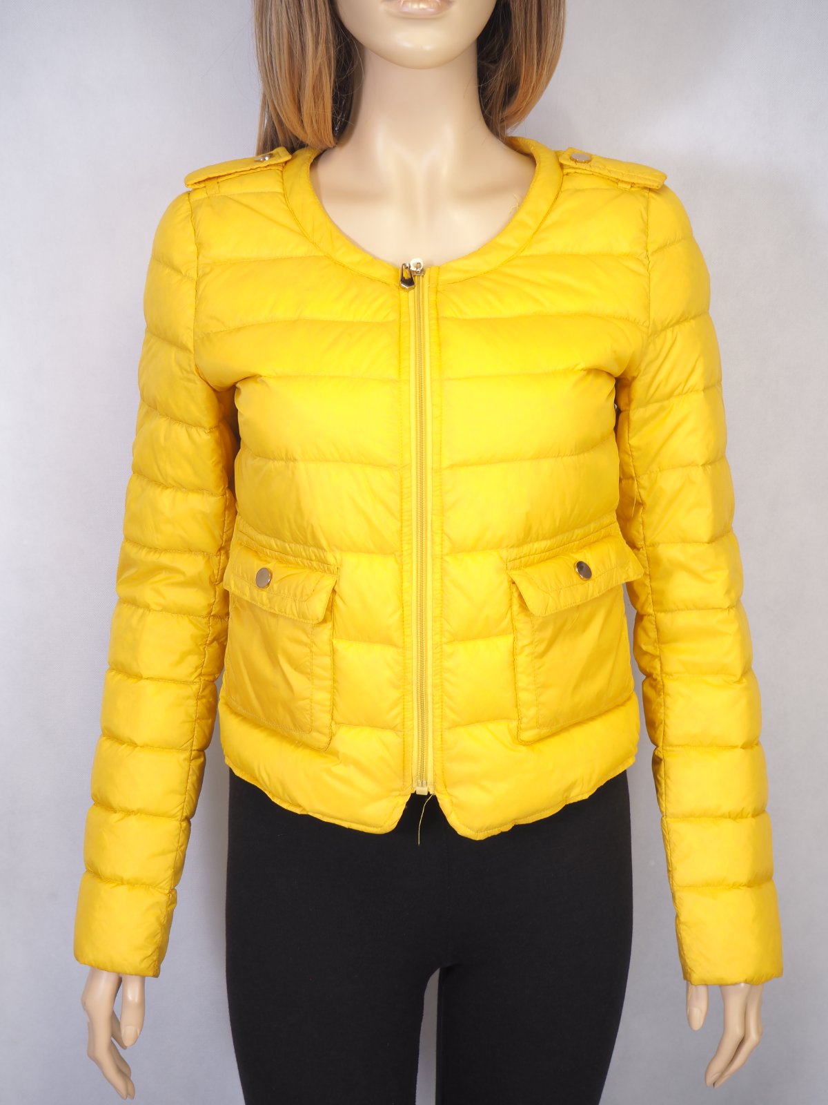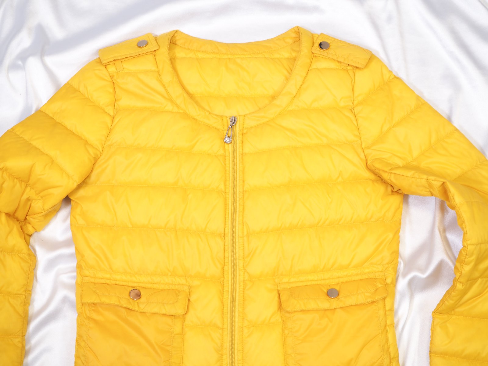 Kvalitná pierková bunda žltej farby, zapínanie na zips, materiál 100% polyester, super stav.