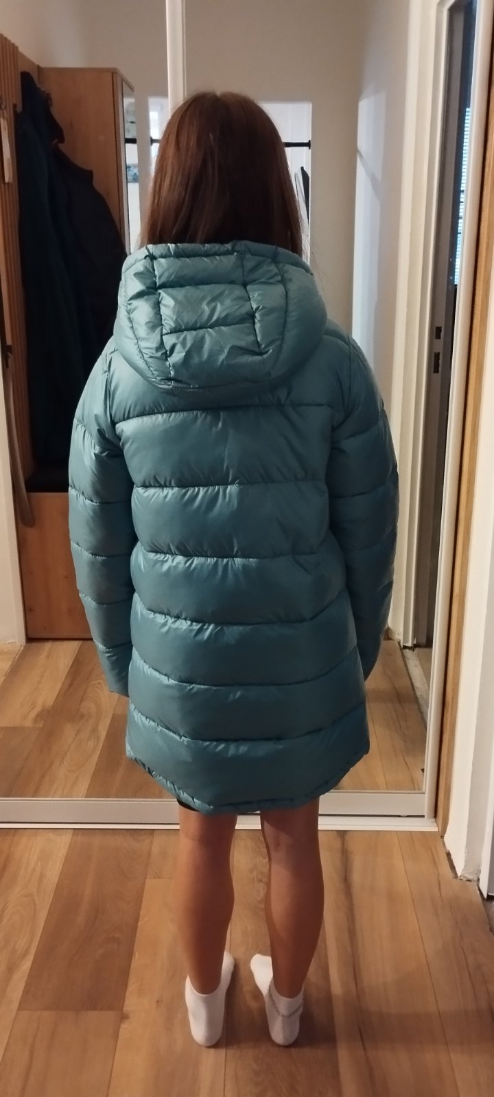 Predám párkrát oblečenú /ako nová/ prešívanú predĺženú HOUSEBRAND bundu s kapucňou, krásnej zelenej farby,veľkosť XS,prsia 48,5cm..dĺžka 77-78cm..cena 18e + poštovné