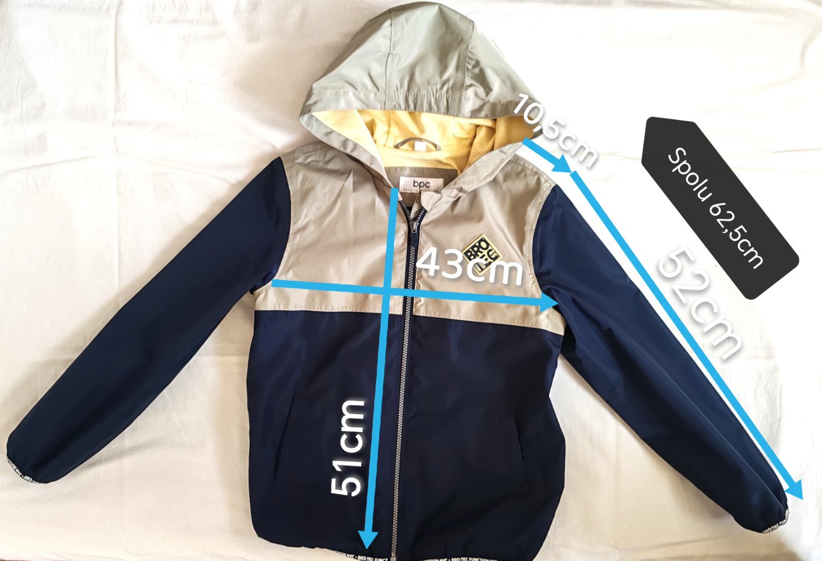 Chlapčenská bunda, málo nosená, veľmi dobrý stav, veľkosť 140-146 (10r-11r). Rozmery viď foto.