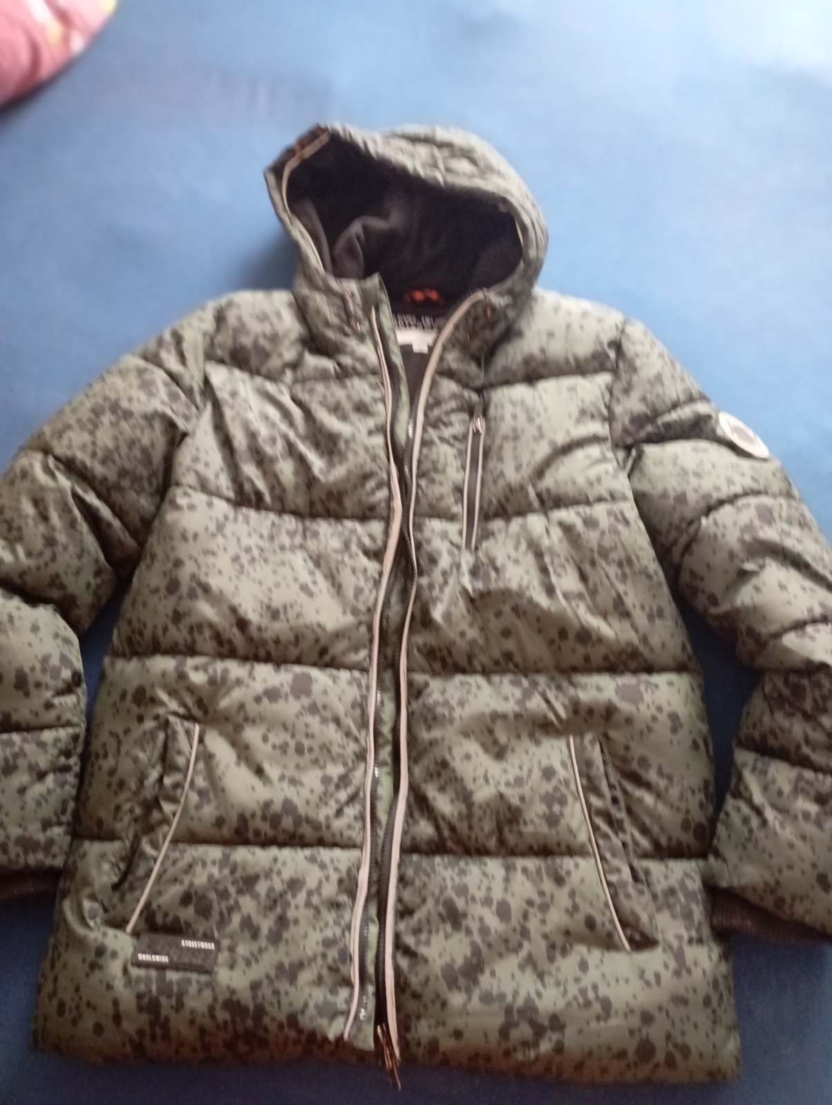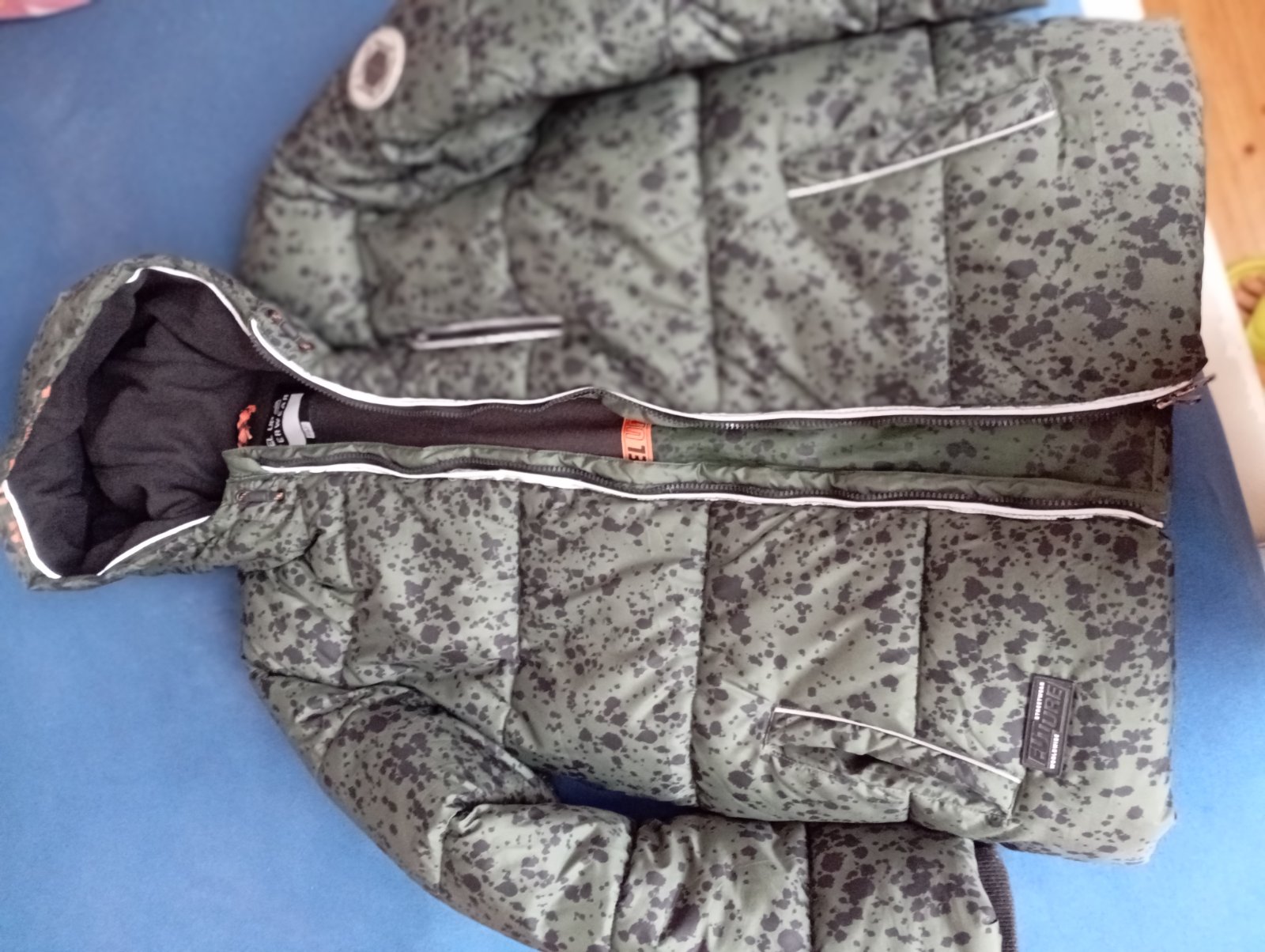 Veľmi teplá zimná bunda veľkosť 164-170 ,alebo S-M. Je maličko nosená len reflexné prvky okolo zipsu sa trhajú (viď foto)inak je bez poškodenia.Mozno nenáročnej maminke poslúži