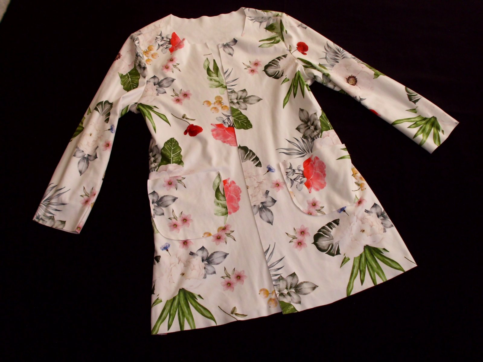 Predám dámske sako-kabátik Italy vel S-M, dĺžka 74 cm, šírka 47 cm, rukáv 50 cm, bez podšívky , 2 vrecká, nie hrubý príjemný prispôsobivý pružný materiál niečo ako tenká jemná jelenica, bez zapínania , biela farba + farebný vzor...., top stav ...