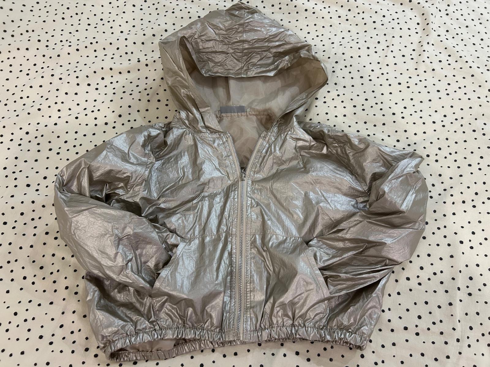 Krásna bundička, s kapucňou, bez chýb. Dve vrecká (tretie vrecko so zipsom je len pre efekt). Dĺžka rukáva 49 cm, dĺžka bundičky 47 cm a šírka 45 cm. Výborne vyzerá, veľmi dobre sa nosí.