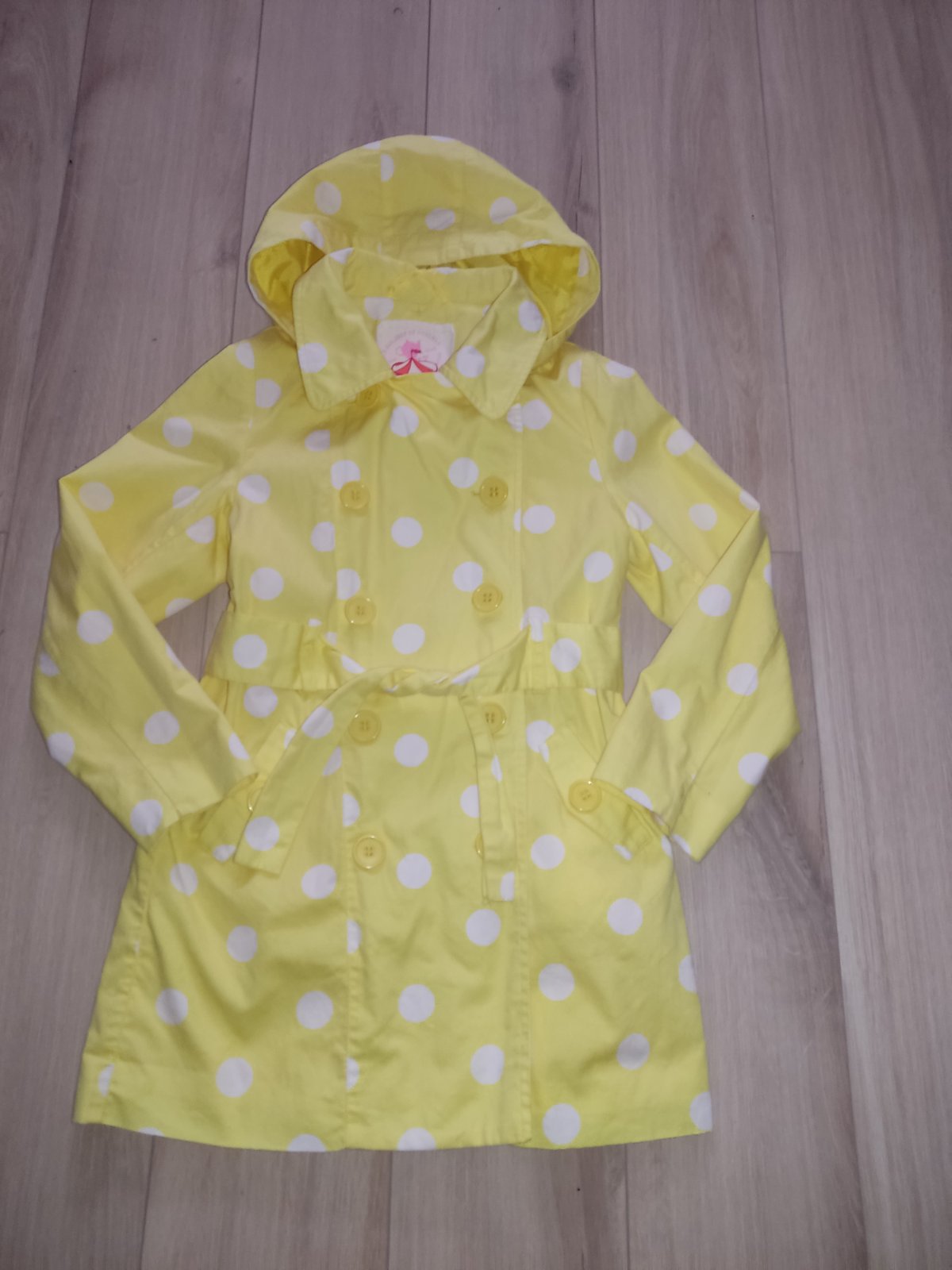 Značka Little Kids, nami kupovaný nový v Pepcu, malo noseny, krásny k satockam ci suknicke. 2 predné vrecka funkčnézapinanie na gombik, 1 vrecko na hrudníku len ozdobné, kapucňa so vzorovanym srdi...