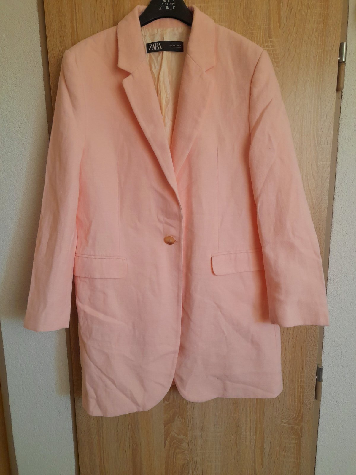 Predám nádherné sako Zara,nosené,v super stave.Material obsahuje ľan.Predlzeny strih,podsite.