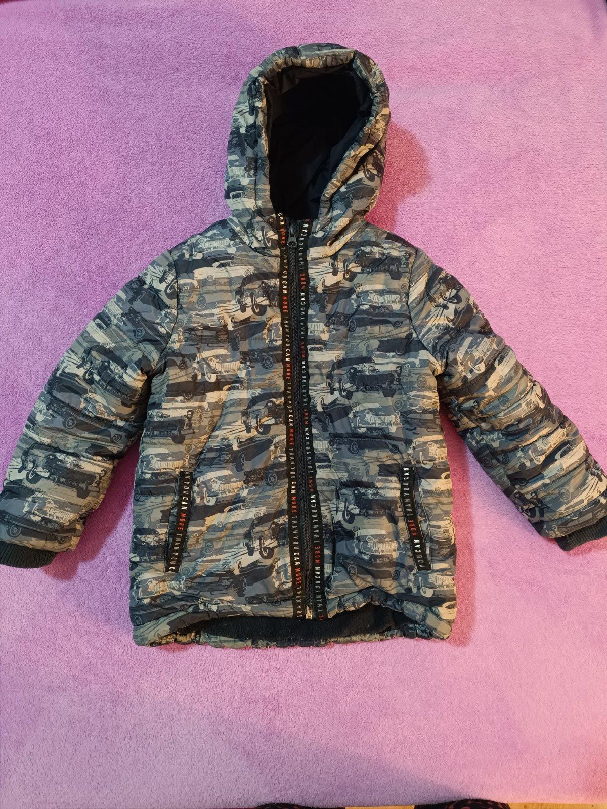 Chlapčenská zimná bunda veľkosť 104, s flisovou podšívkou. Teplucka. Motív áut. Má dve chybičky krásy, dve malinké trhlinky, odfotila som. Inak bez chýb. Cena už s dopravou.