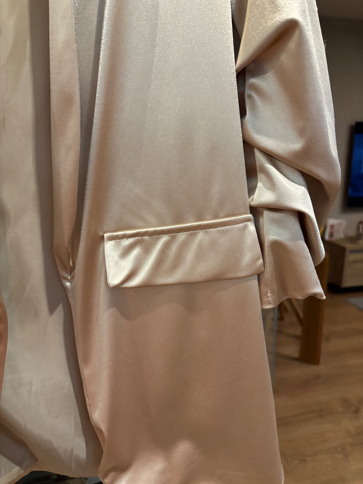 Predám krásny prechodný kabátik Paparazzi fashion. Prsia do 120 CM , zapínanie na 4 gombíky. Oblečený bol raz. Pôvodná cena bola 69 eur. Farba je krásna svetlo sivá so striebornou niťou. Top stav
