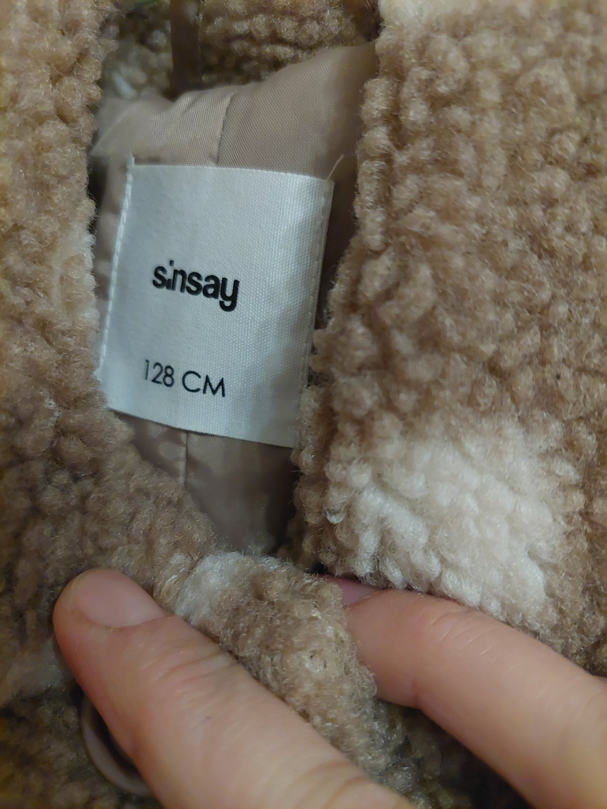 velmi teplý a krásny, dá sa prať vel. 128-134 na 7 - 9 rokov, možno aj skorej, rukávy sa dajú ohrnuť a trči kožušinka, dl, 85 cm, šiírka 40cm ,