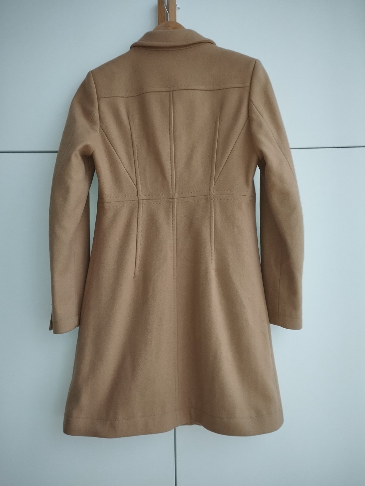 Veľmi kvalitný vlnený kabát iba pár krát oblečený a potom už len stal v skrini. Veľkosť sedí na S, poprípade malé M, veľkosť je uvedená Talianska 42. Tavia farba.