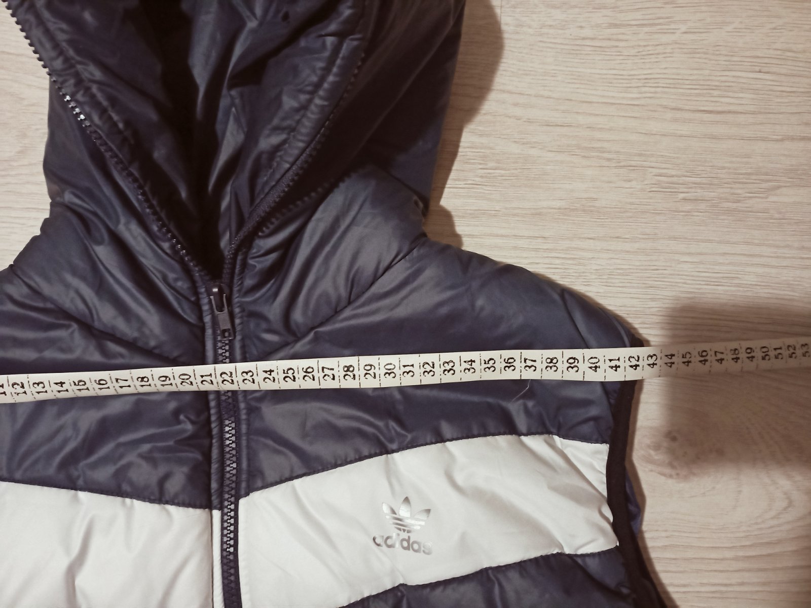 Nova, nikdy nenosena, len stojí v skrini. Zipsy funkčné. Aj vrecká sú na zips. Dole stiahnutá gumou. Miery na foto.