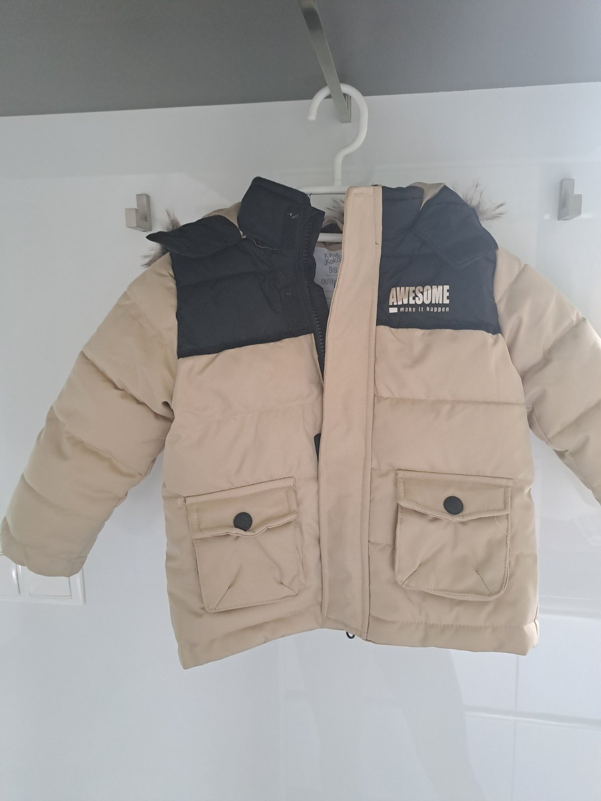 Zimná bundička kupovana v Kiku - bez chýb alebo poškodení. Bola oblečená tak max. trikrát lebo sme toho mali veľa v tú zimu keď bola synčekovi dobrá. Kapucňa je odopínateľná.