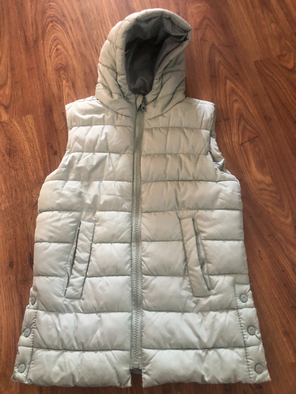 Top stav, nosená jednu sezónu, kapucňa napevno. Veľmi pekná pastelová farba, foto nevystihuje. Dĺžka 63 cm, šírka 44 cm.