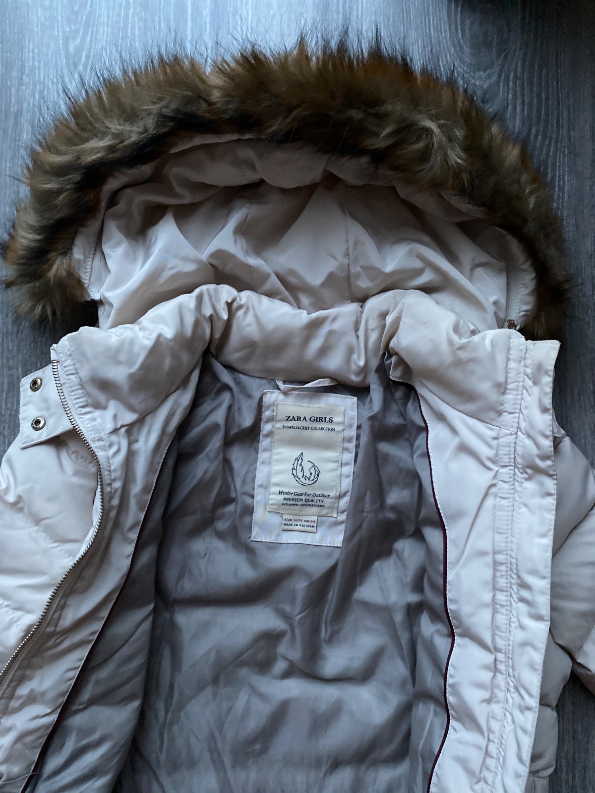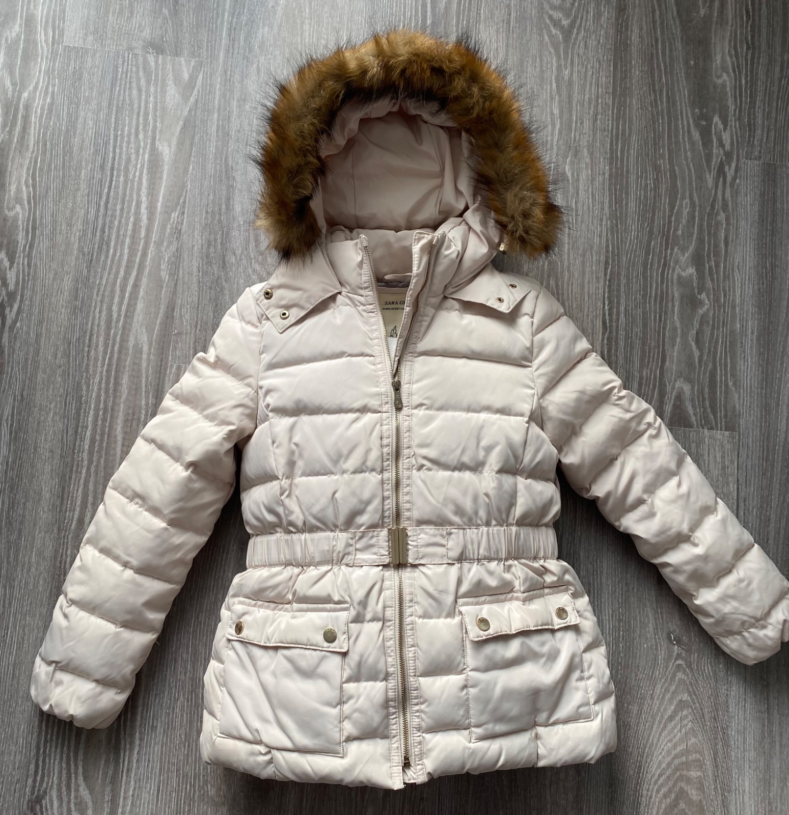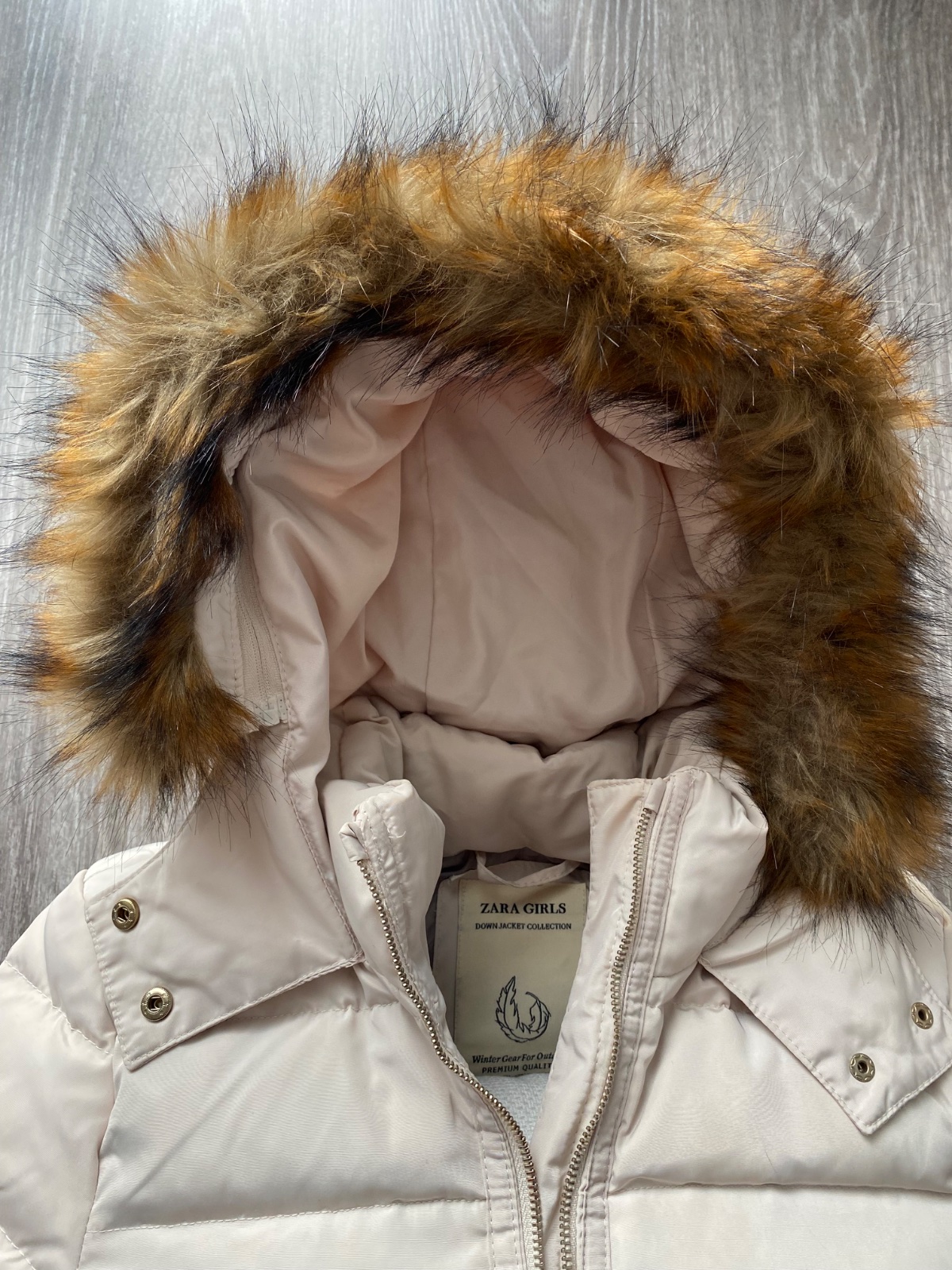 Páperová🪶, prešívaná vetrovka, kožušinka na kapuci je odnímateľná; zips je kovový; kvalitná - nezatrháva sa, teplá: oblečená minimum; je možné ju aj prať v práčke aj čistiť chemicky
