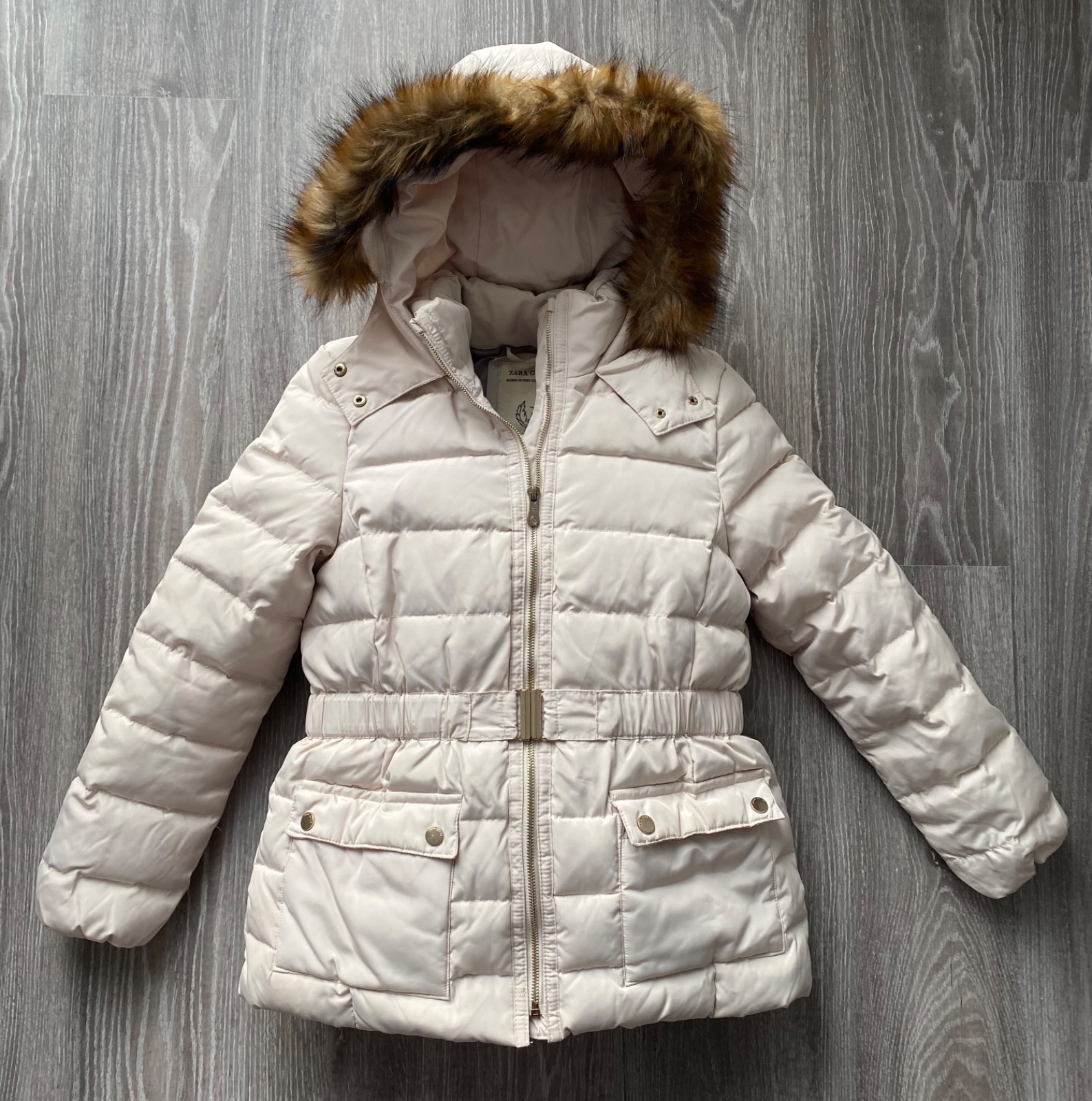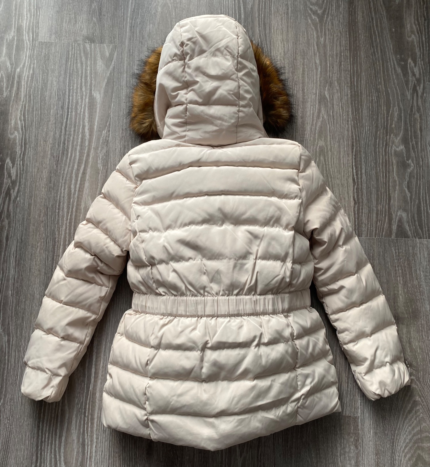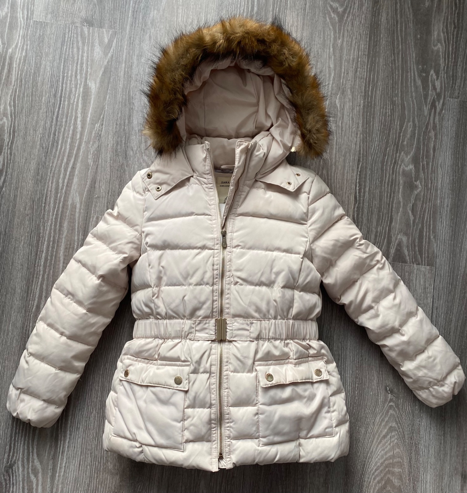 Páperová🪶, prešívaná vetrovka, kožušinka na kapuci je odnímateľná; zips je kovový; kvalitná - nezatrháva sa, teplá: oblečená minimum; je možné ju aj prať v práčke aj čistiť chemicky