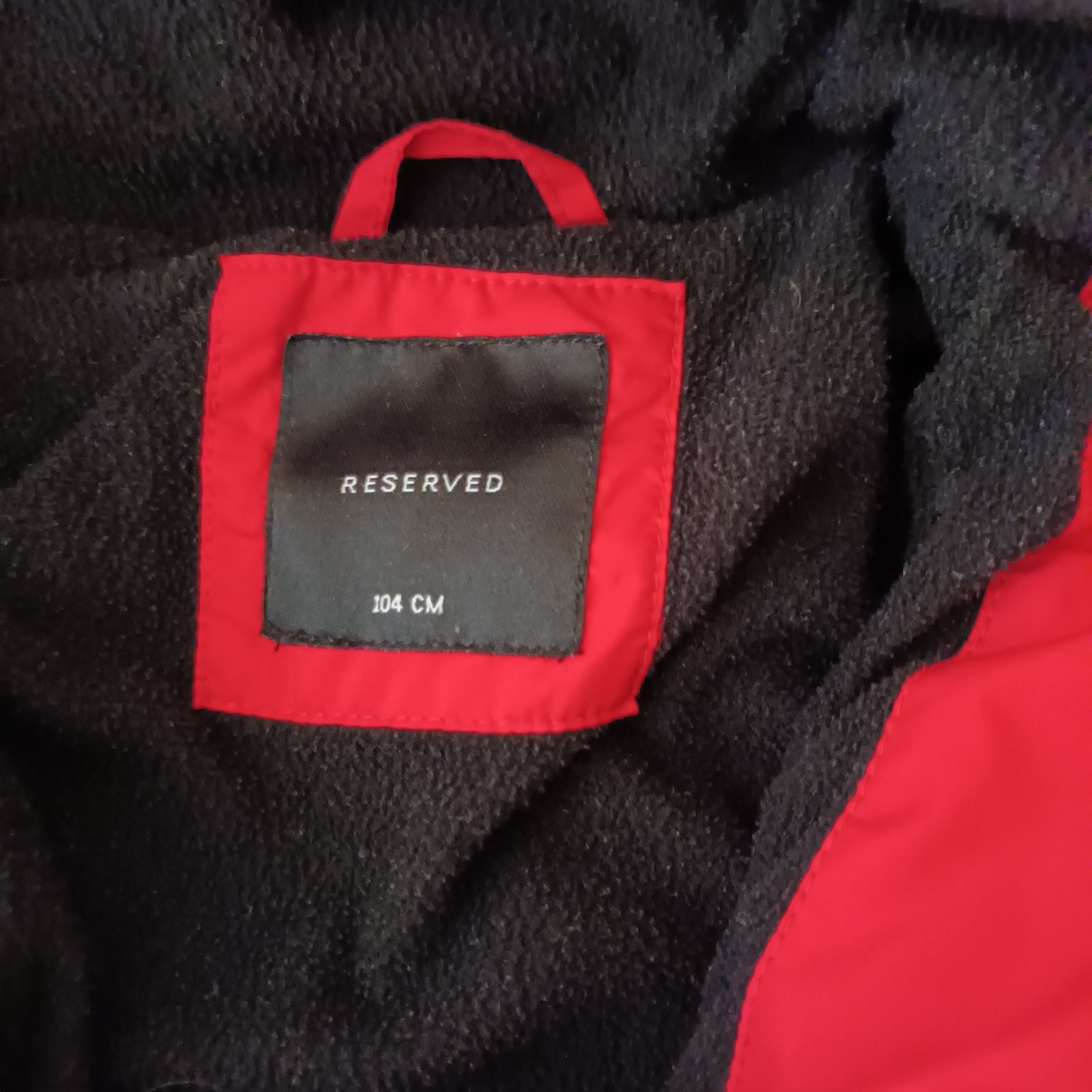 Predám chlapčenskú zimnú bundu zn. Reserved. Používaná, ale vo veľmi dobrom stave. Farba: červená. Veľkosť: 104